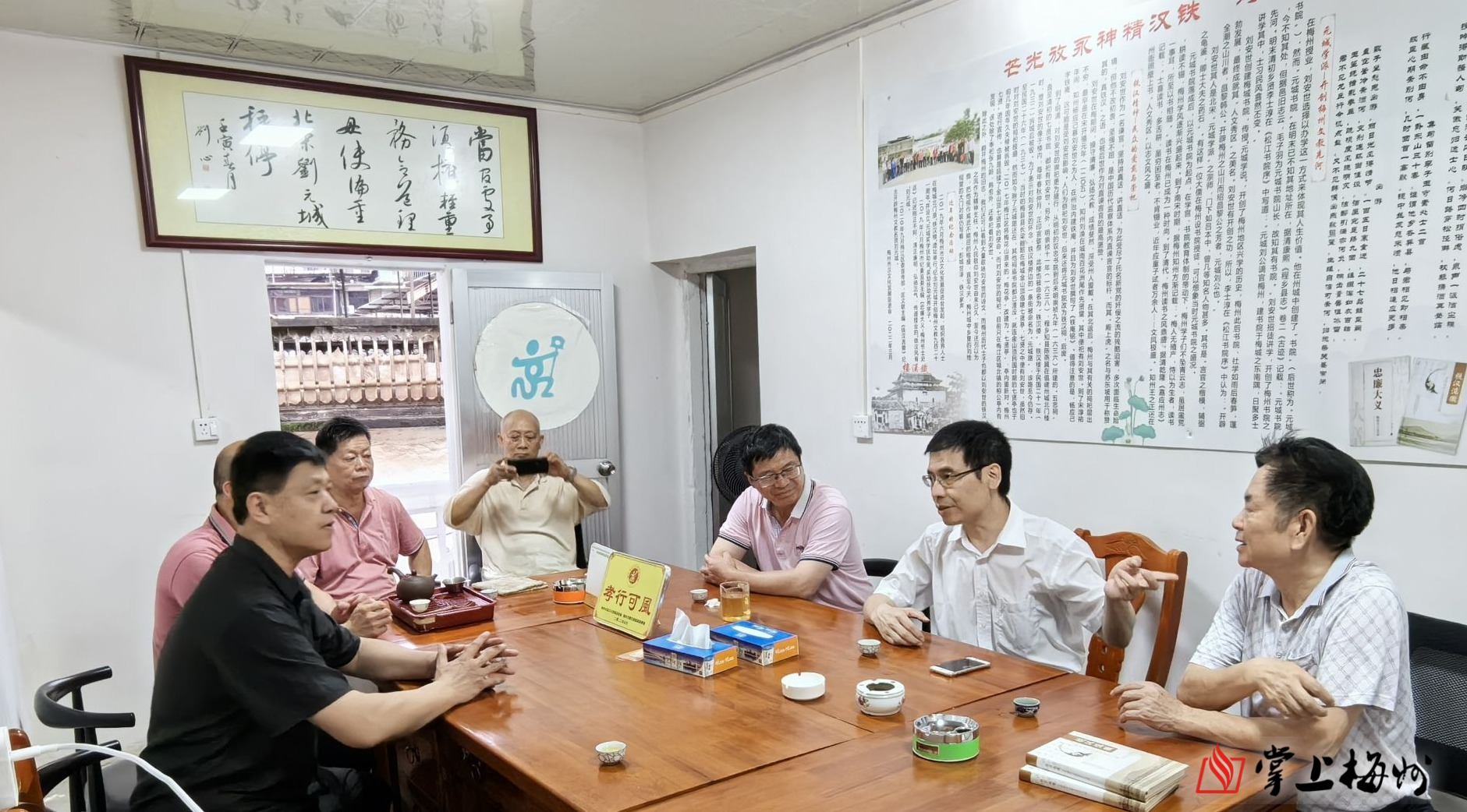 三、和梅州当地有关领导就加强两地经济文化往来作了初步对接。探访刘安世文化的间隙里,我们得以见到梅江区人大常委会的领导,并就以刘安世文化为纽带,全力推动馆梅两地文化与经济的交流达成初步意向。企盼后续能引起双方领导的重视,以文化为突破口,开展经济合作活动,助推双方的发展。