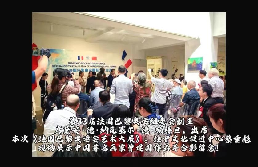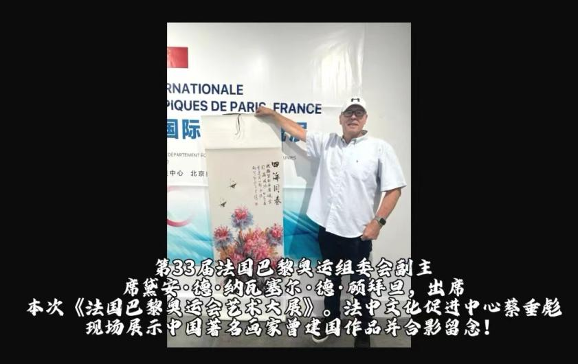 正当巴黎奥运会热播之际,一个短视频从巴黎经网络平台传至手机,映入笔者眼帘:第三十三届法国巴黎奥运会组委会副主席黛安·德·纳娃塞尔·德·顾拜旦出席“法国巴黎奥运会国际艺术交流展”,法中文化促进中心蔡垂彪先生在一片热烈而又和谐的氛围中,现场展示中国著名画家曾建国先生所画的两幅国画作品写意牡丹“四海同春”“和美吉祥”并合影留念。