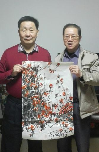 法中文化促进中心蔡垂彪先生与曾建国作品合影留念。