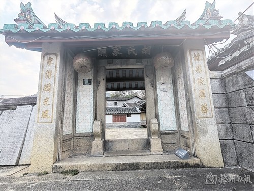正门的门楼“胡氏家庙”四个大字苍劲有力,门联阴刻“地据蛟潭胜,家传麟史风”。