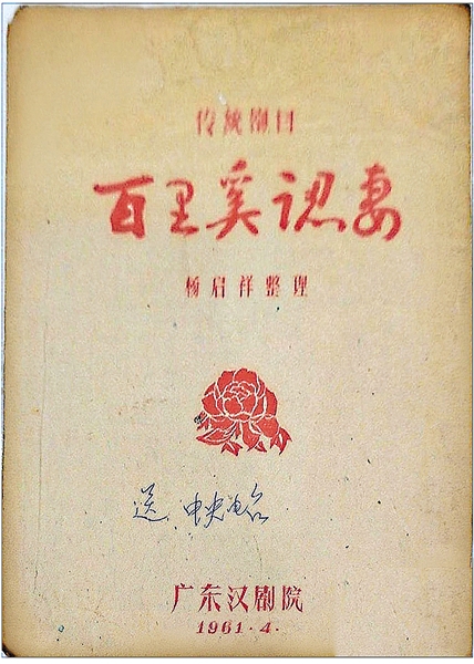 梅兰芳在一篇文章中,对杨启祥的代表作汉剧剧本《百里奚认妻》给予很高评价,说这么精美的唱词不可随便改了。(图为1961年版本)