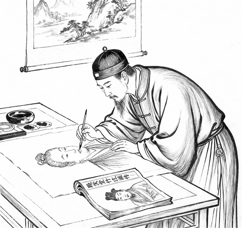 上官周创作《晚笑堂竹庄画传》人物线稿。(黄冰尔供图)
