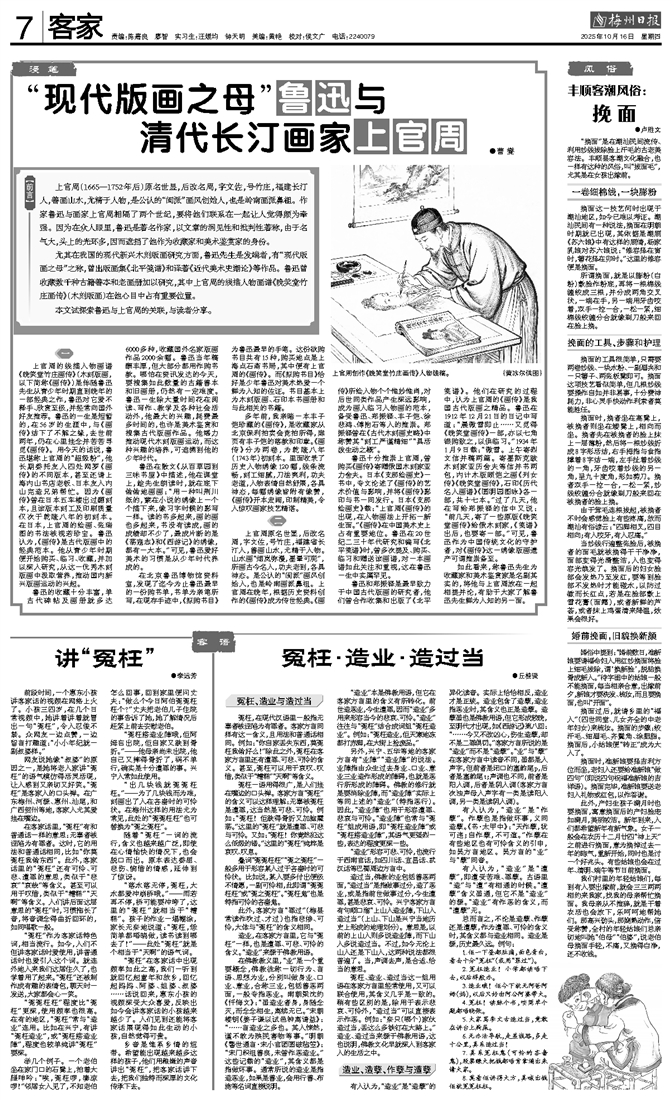 上官周(1665—1752年后)原名世显,后改名周,字文佐,号竹庄,福建长汀人,善画山水,尤精于人物,是公认的“闽派”画风创始人,也是岭南画派鼻祖。作家鲁迅与画家上官周相隔了两个世纪,要将他们联系在一起让人觉得颇为牵强。因为在众人眼里,鲁迅是著名作家,以文章的洞见性和批判性著称,由于名气大,头上的光环多,因而遮挡了他作为收藏家和美术鉴赏家的身份。