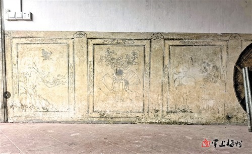 进入大门后是下堂(门厅),正对面是木质屏风,屏风两侧为出入的屏门,屏门下方的拼板上浅浮雕有花瓶和插花及画轴等静物,寓意平安富贵。两侧墙壁绘制有客家地区传统的墙裙壁画,每个板块内部绘制有花鸟或山水纹样,蕴含吉祥寓意;下堂后面天井两侧侧厅三面围合,面向走廊一面有四扇木质屏门形成开启面,屏门分上下两部分,上面是可调节通风采光的竖向条形格栅推拉窗,下面是浅浮雕拼板,图案为花瓶插花和卷轴宝剑彩带等,寓意平安富贵、文武双全;上厅装饰总体朴素,正后方是木质拼板的太师壁,各镶板上矿物彩绘制了静物寿桃等吉祥纹样,太师壁前摆放了祭祀用的案台,氛围庄严神圣。两侧墙壁的墙裙壁画内容丰富,既有吉祥含义,又具有一定的时代性。