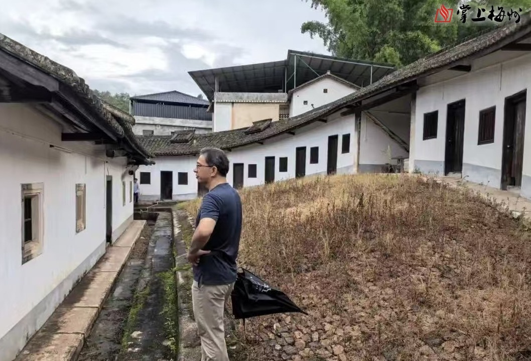 首访林文铮故居是2020年疫情期间。2020年3月4日上午,我们来到坐落于梅县区程江镇长滩村的“承怡居”,房屋因少人居住显得破旧而阴湿。长滩村党支部林书记介绍了林文铮在梅州中学就读时居住过的房间位置。我们用相机和手机记录一个个有价值的画面,从整体到局部,不放过任何一处细节,获得了很多第一手资料。无人机因下雨不能起飞,4天后安排团队同事再实地测量一遍。