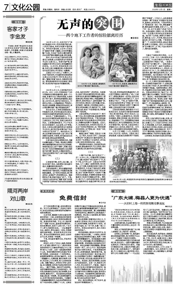 然而,让他们感到无比痛心的是:有多少好同志、好战友,已经血洒刑场,倒在敌人的屠刀之下;又有多少好同志、好战友,已身陷囹圄,生不如死,惨遭摧残迫害;还有多少好同志、好战友,此时正在四处躲藏,过着野人般的悲惨生活!而千千万万个骨肉同胞,包括自己和妻儿老小,都将分隔两岸,不知何时才能得以团聚?(史料审核:中共梅州市委党史研究室)
