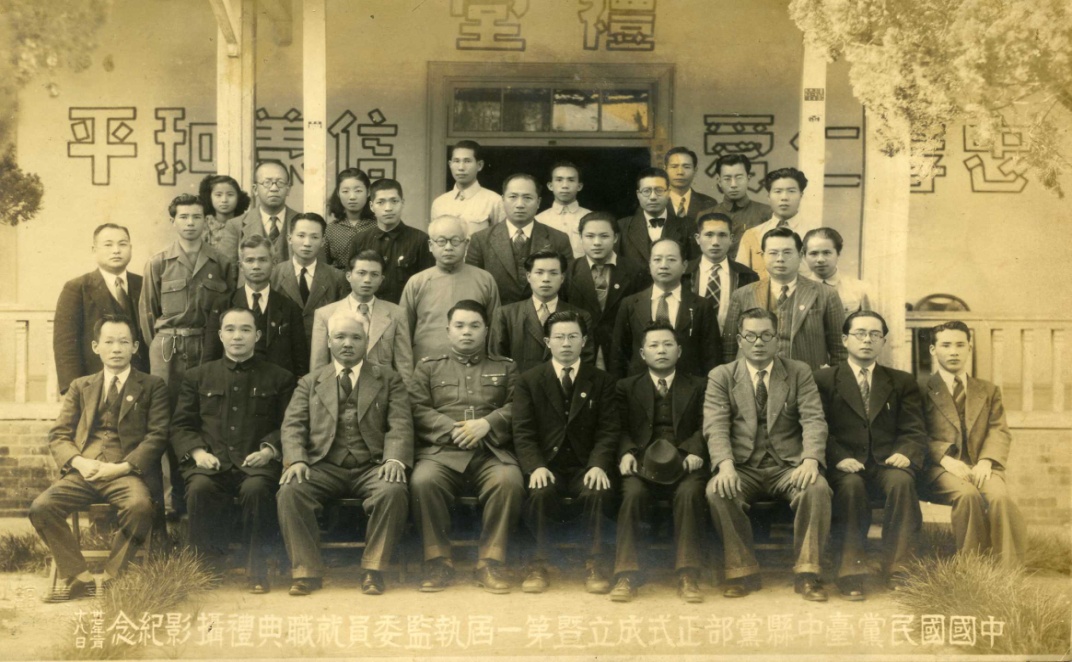 1948年2月18日,中国国民党台中县党部成立暨首届执监委就职典礼合影纪念(前排中坐者为徐森源)。