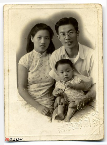 1947年8月,徐森源、潘佩卿夫妇与次子基东摄于基隆中学。