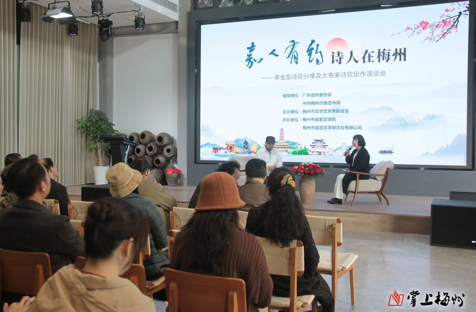 12月7日上午,纪念李金发诞辰125周年系列活动之“嘉人有约·诗人在梅州——李金发诗歌分享暨大客家诗歌创作漫谈会”在蕉岭县米香中心举办。参加本次漫谈会的包括来自北京的著名诗人、《诗刊》原常务副主编商震,中国诗歌学会副会长、首届鲁迅文学奖诗歌奖获得者王久辛,广东省作家协会创研部主任世宾,福建、江西、广西的客家诗人代表,广东各地的诗人代表以及梅州本土诗人共80多人参加,堪称近10年来广东最大规模的一次诗歌盛会。