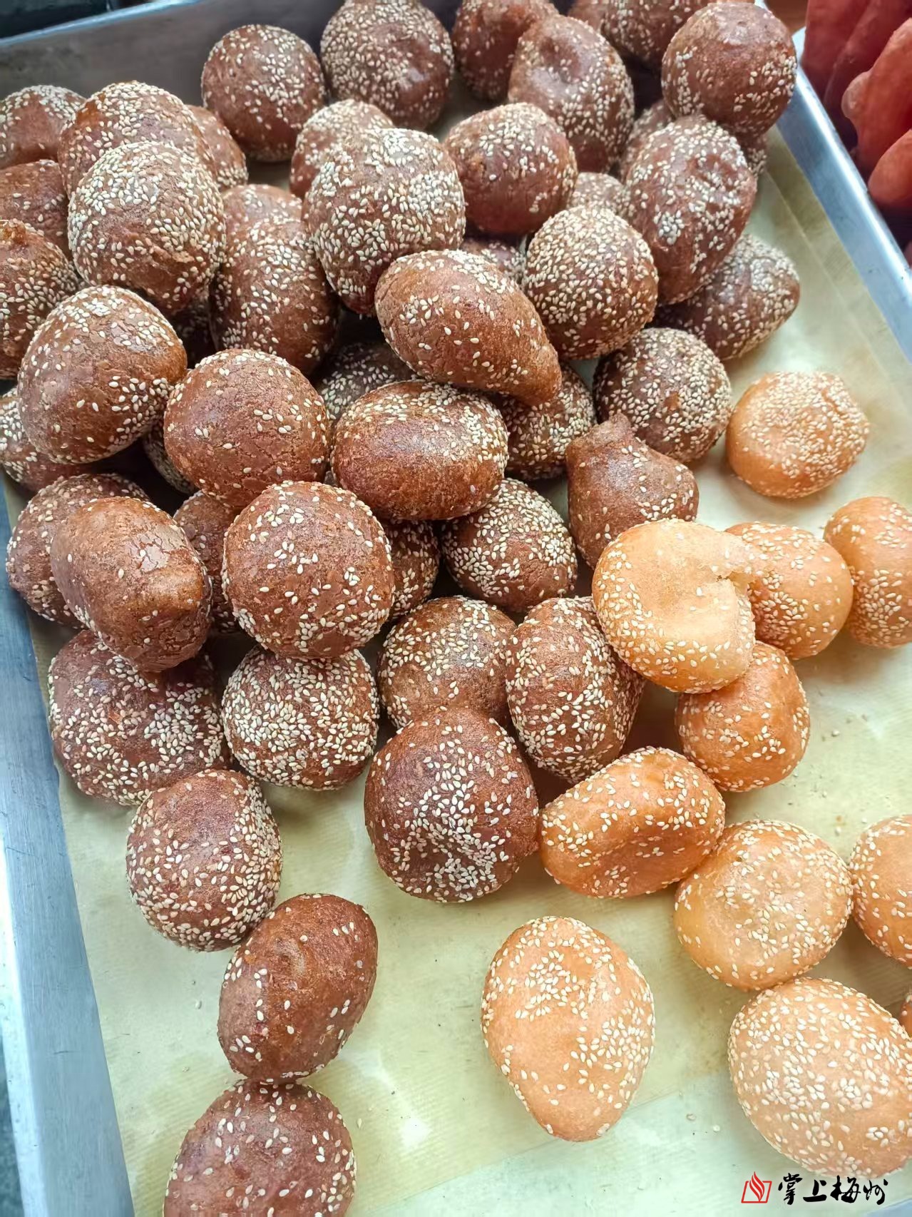 刚出炉的煎堆黄澄澄。(果乔七/摄)
