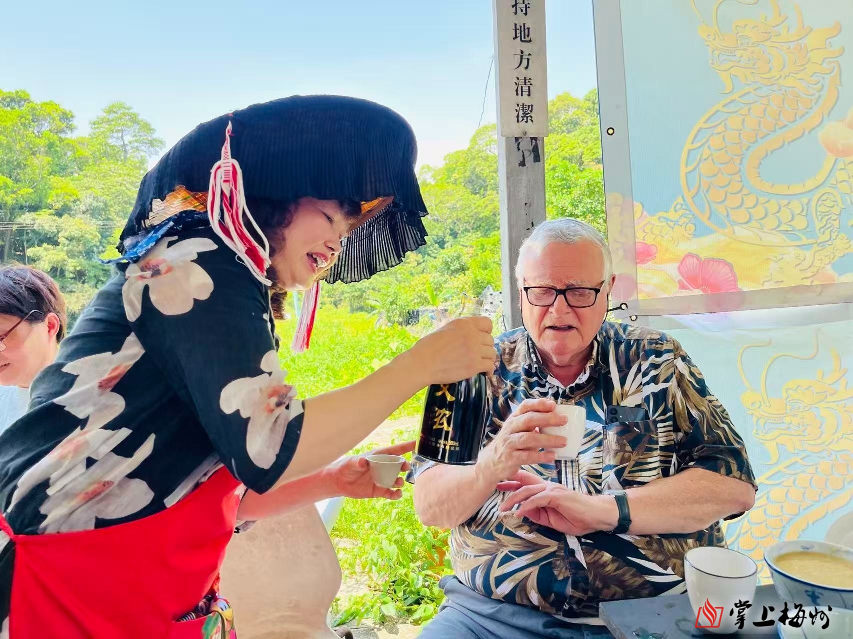 ▲作者在品尝香港古老村落“茂草岩”村民自制的一杯新茶。