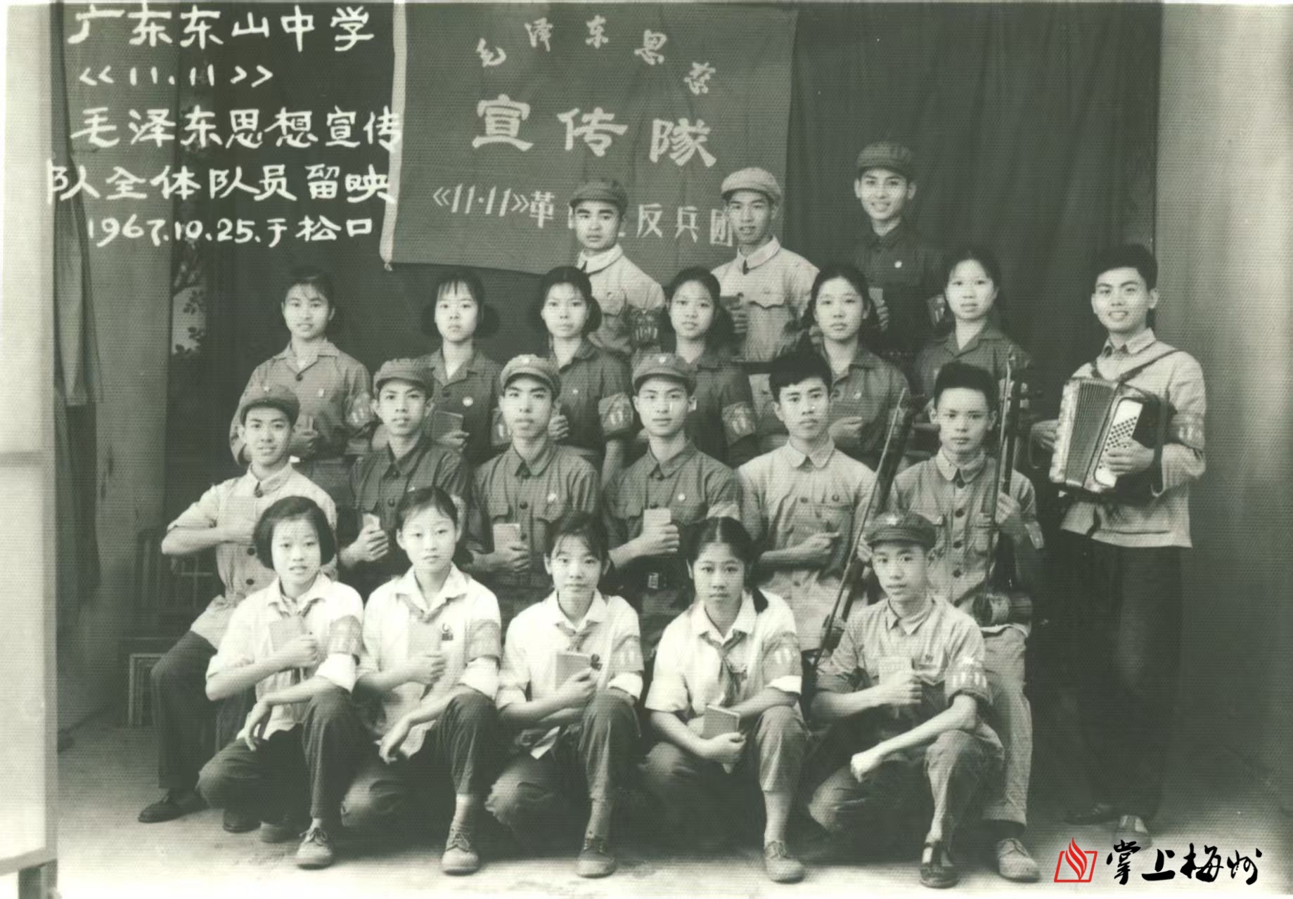 ▲本文作者(三排右三)参加“毛泽东思想宣传队”时的队员合照(1967年10月留影于松口,前排左二是被温泉烫伤的魏同学。此队伍亦前往松口、丰顺县留隍戏院演出。)