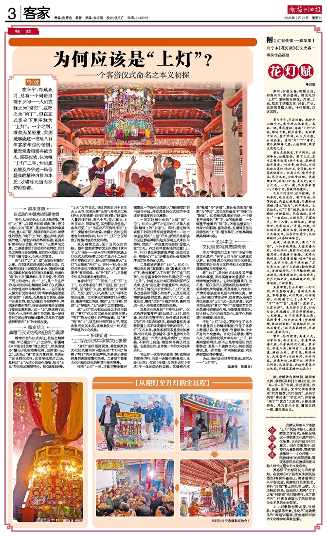 赞曰:花灯煌煌,其道大光。由家而国,由古至今。昔者照族谱之续,今者映时代之新。君不见,非遗入典,薪传有人;童叟能道,雅俗共珍。君不见,网络传灯,天涯若邻;旧俗新风,并作阳春。祈愿斯灯,永耀宁江:照得千门同昼,九域皆春,共绘华夏复兴之长卷,同铸客家精神之昆仑!