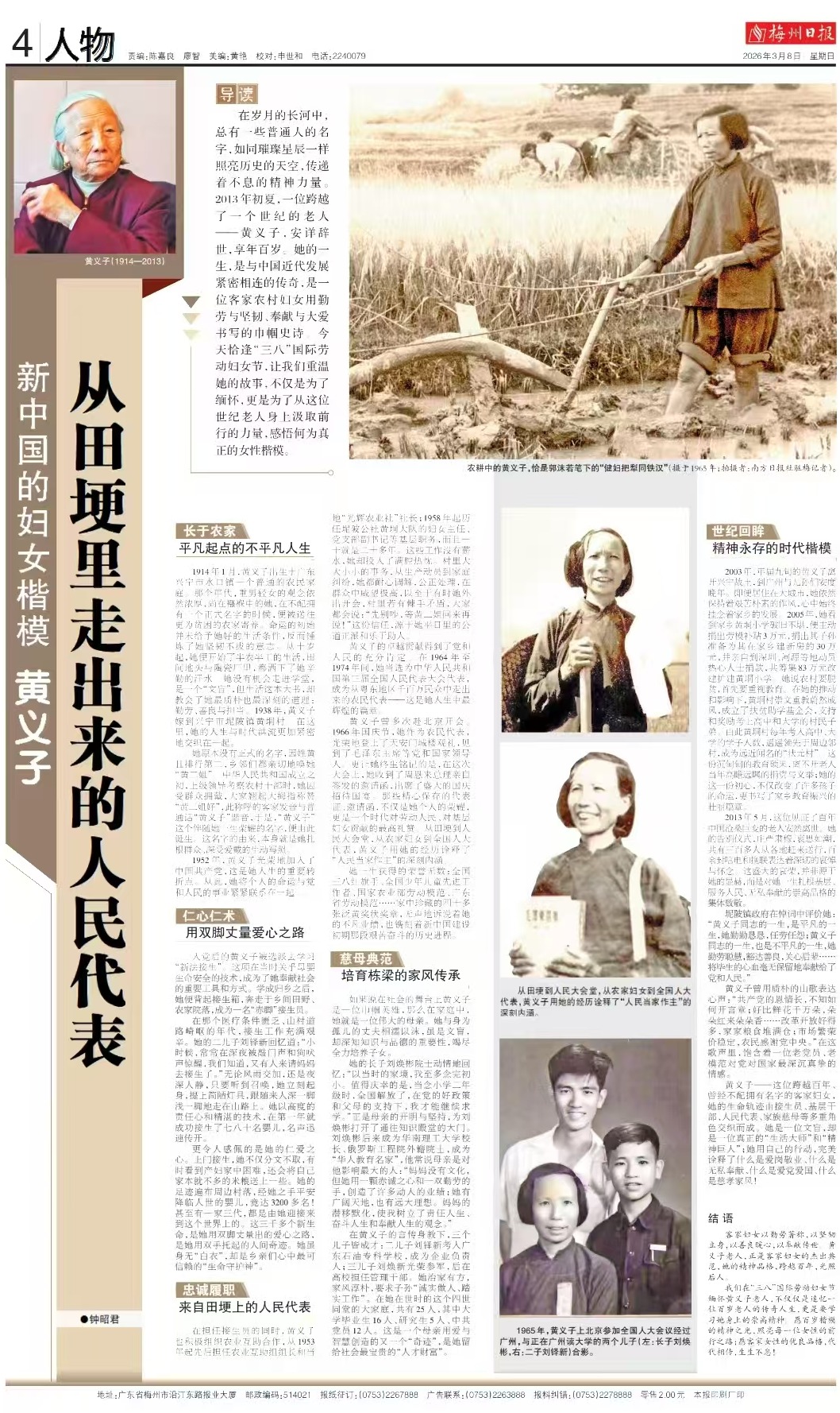 我们在“三八”国际劳动妇女节缅怀黄义子老人,不仅仅是追忆一位百岁老人的传奇人生,更是要学习她身上的崇高精神。愿百岁楷模的精神之光,照亮每一位女性的前行之路;愿客家女性的优良品格,代代相传,生生不息!