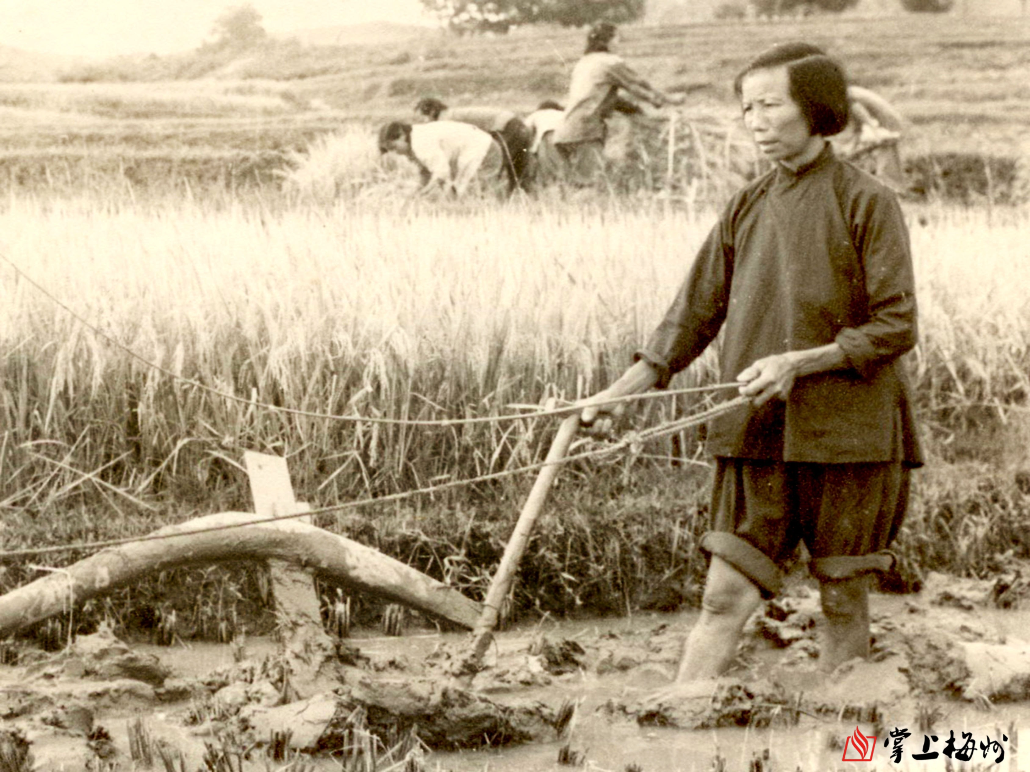 农耕中的黄义子,恰是郭沫若笔下的“健妇把犁同铁汉”。(摄于1965年,拍摄者:南方日报社驻梅记者)