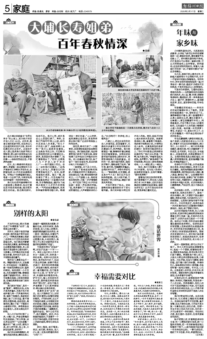 在大埔这块被誉为“世界长寿乡”的土地上,官方统计的百岁老人已达162位。近年来,笔者主理的客家书院,也迎来过几位远道而来的百岁访客,其中年纪最长的已过百岁。这些百岁老人要么是来我们客家书院讨要春联,要么就兴致勃勃地与后辈分享抗日战争与抗美援朝的故事——每每回想起这些,不禁肃然起敬!