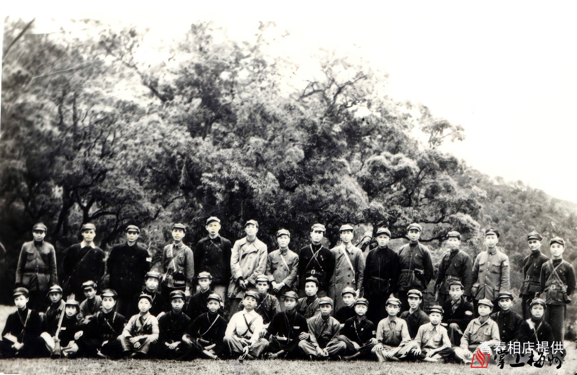 1949年4月20日,一场漂亮的歼灭战之后,闽粤赣边纵队第一、第七支队领导在梅县松源官岃背合影(前排席地而坐的是各自的通讯员)