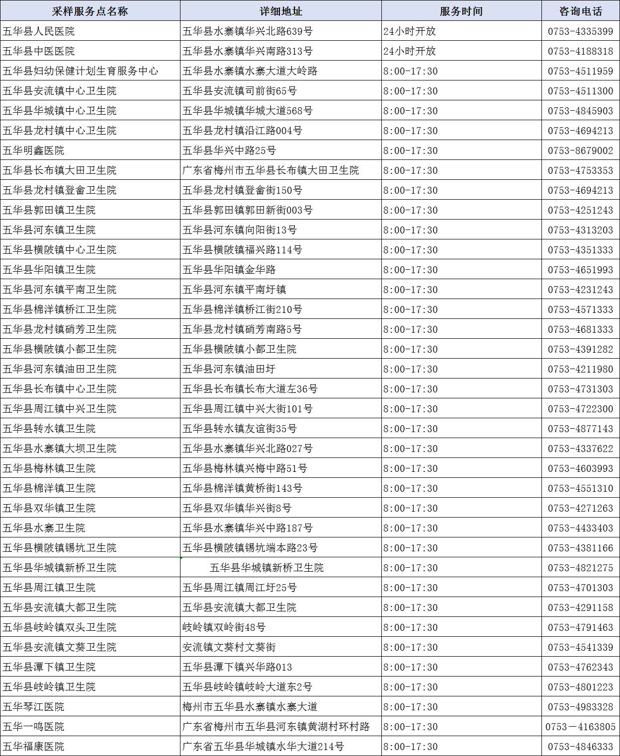可出具英文新冠病毒核酸检测报告的核酸采样服务点(机构)信息汇总表