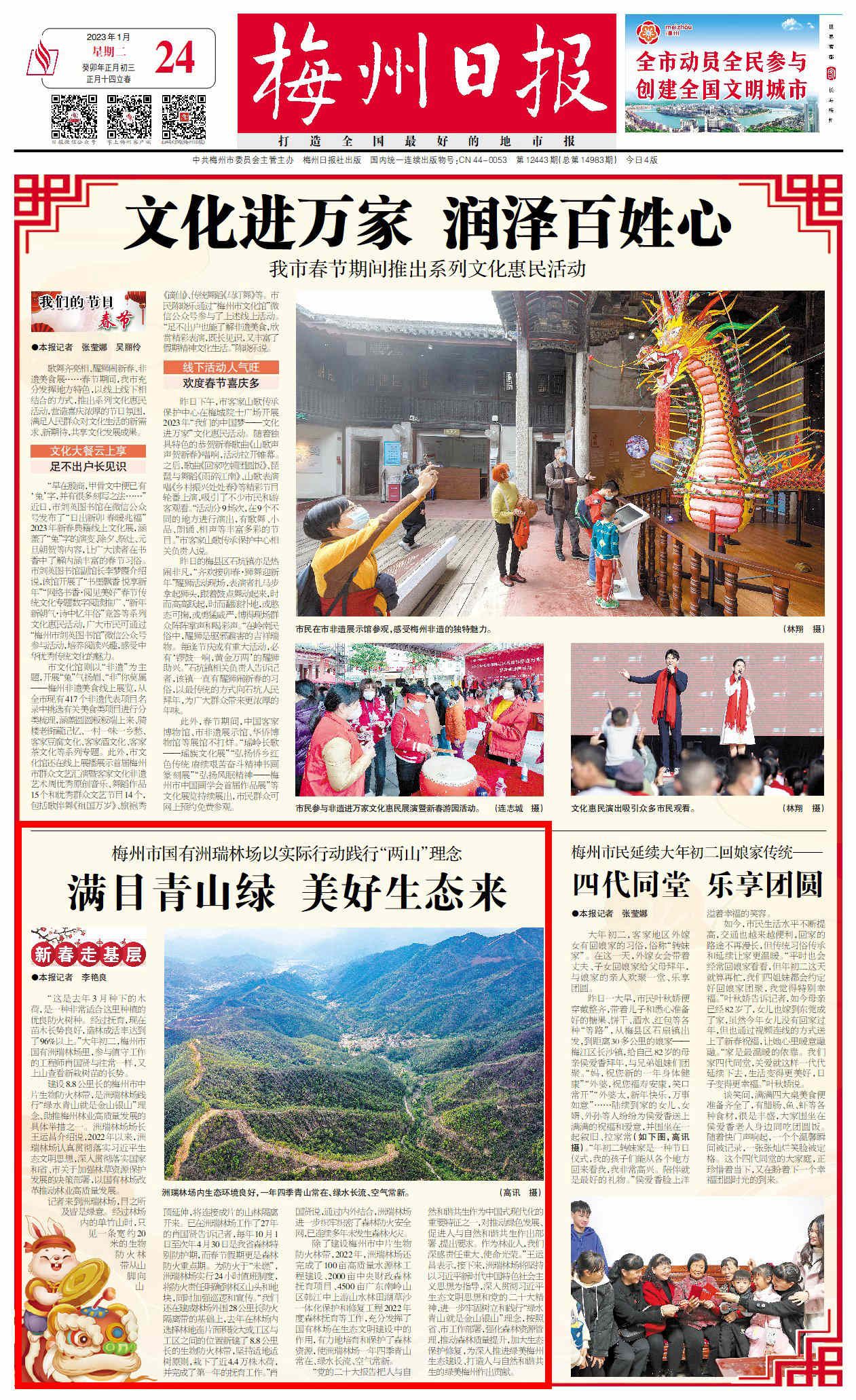 “党的二十大报告把人与自然和谐共生作为中国式现代化的重要特征之一,对推动绿色发展、促进人与自然和谐共生作出部署、提出要求。作为林业人,我们深感责任重大、使命光荣。”王运昌表示,接下来,洲瑞林场将坚持以习近平新时代中国特色社会主义思想为指导,深入贯彻习近平生态文明思想和党的二十大精神,进一步牢固树立和践行“绿水青山就是金山银山”理念,按照省、市工作部署,强化森林资源管理,推动森林质量提升,加大生态保护修复,为深入推进绿美梅州生态建设、打造人与自然和谐共生的绿美梅州作出贡献。