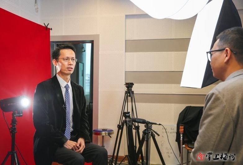 2021年3月3日,张晓赴京参会前,受邀做客梅州日报全媒体直播间,接受记者林德培采访。(吴腾江 摄)