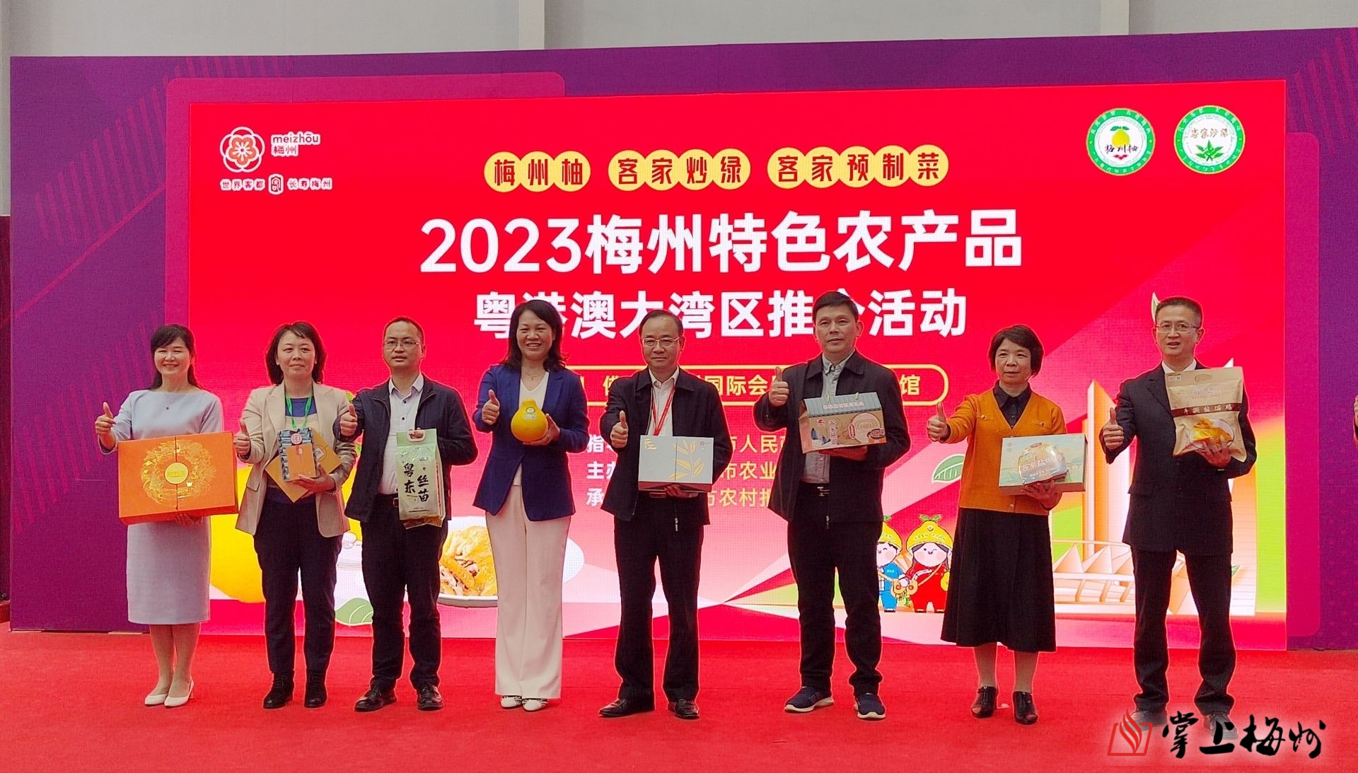 掌上梅州讯 3月3日下午,梅州特色农产品粤港澳大湾区推介会在佛山市顺德区潭洲国际会展中心举行,现场宣传推介梅州柚、客家炒绿、客家预制菜。市政府副市长谢钦文、省农业农村厅二级巡视员罗惠兰参加活动。