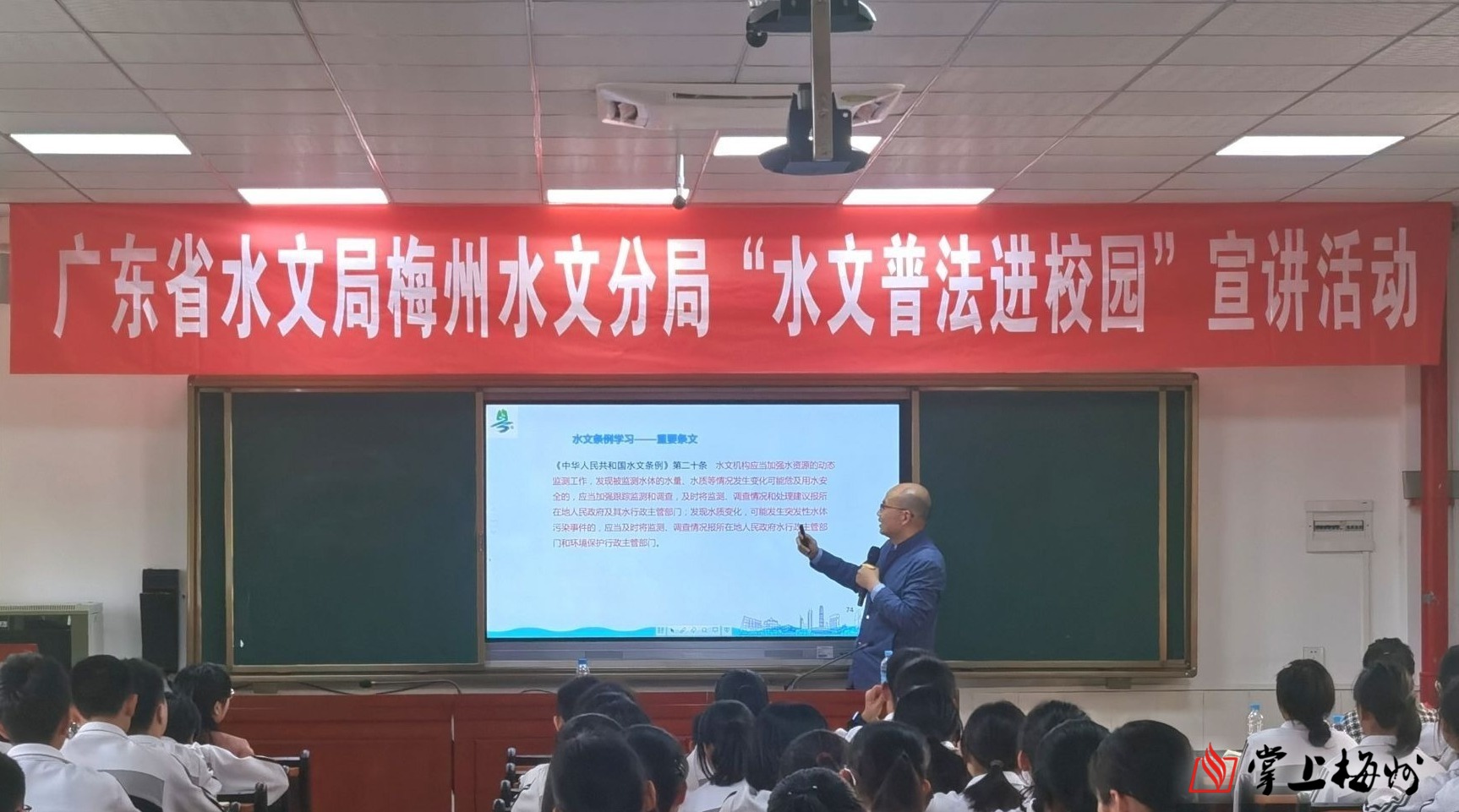 掌上梅州讯 为进一步宣传贯彻《广东省水文条例》,同时帮助学生了解梅州基本水情,认识水资源的重要性,树立水法制、水忧患、水资源保护意识,3月8日,梅州水文分局在广东梅县东山中学开展了“水文普法进校园”活动。