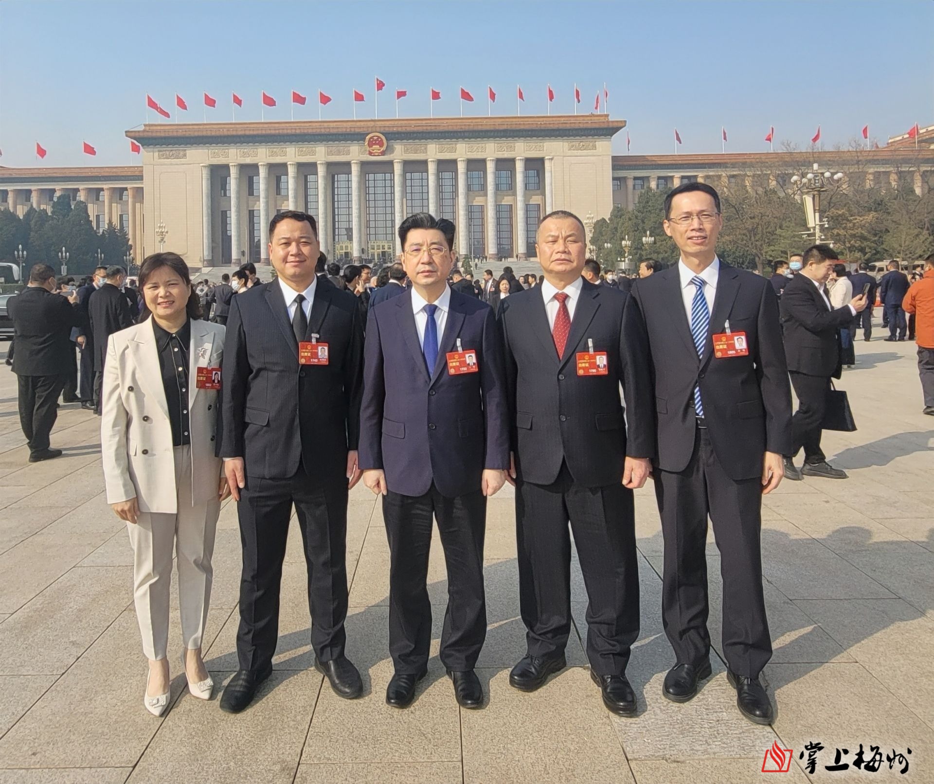 我市全国人大代表(左起:张春梅、叶继联、王晖、邹锦开、张晓)在北京人民大会堂前留影。