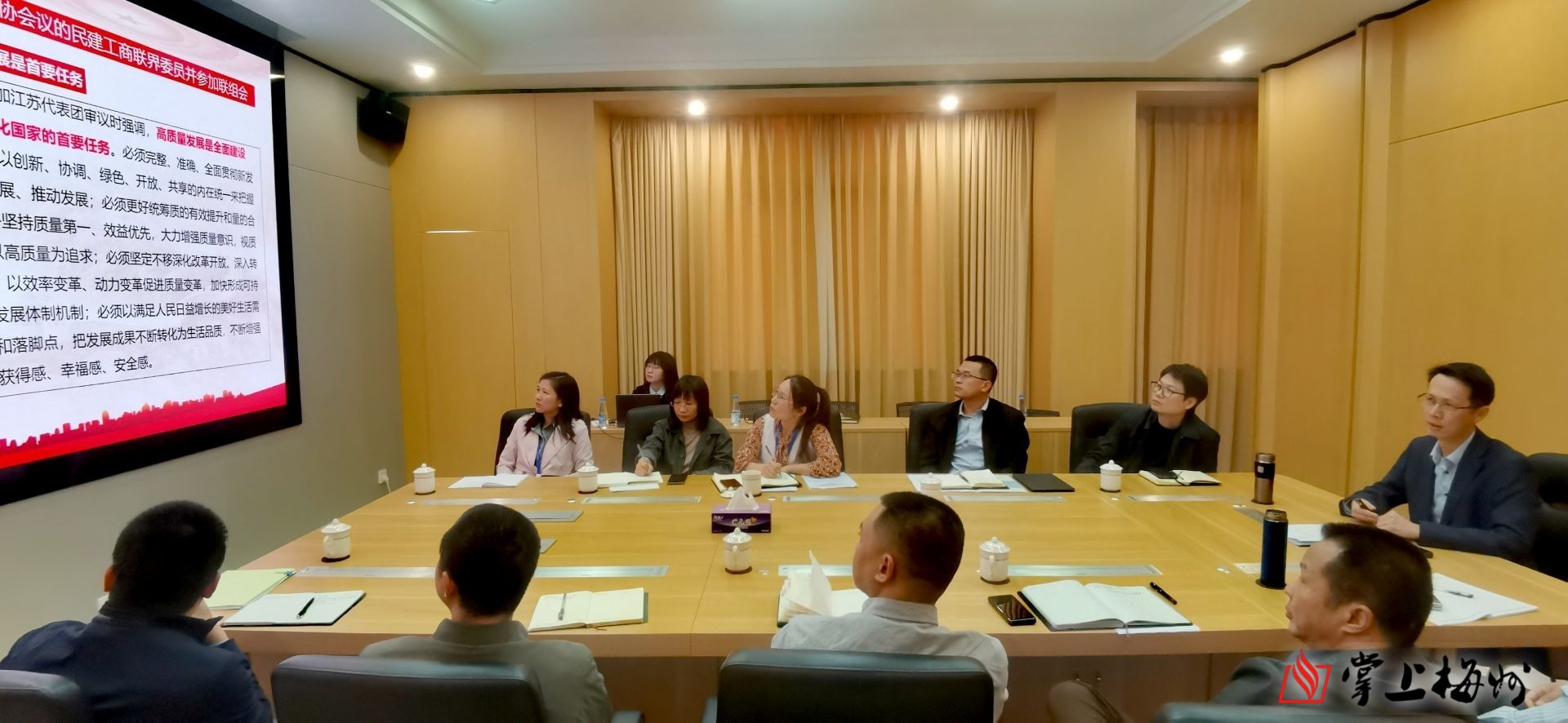 掌上梅州讯 3月14日下午,刚从北京回到梅州的全国人大代表、嘉城建设集团党委书记、董事长张晓,在嘉城建设集团召开会议宣讲全国两会精神,他结合参会履职感受,把大会的暖心政策、喜人消息第一时间传递给一线干部职工。