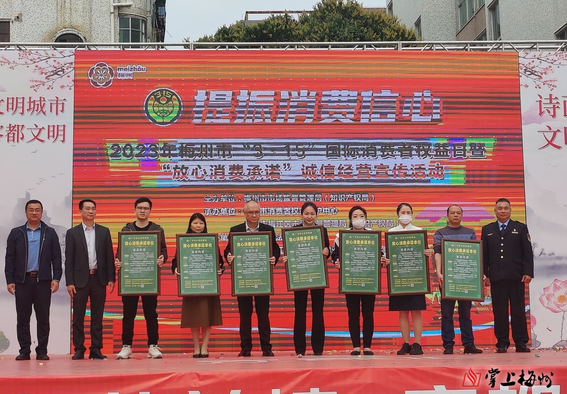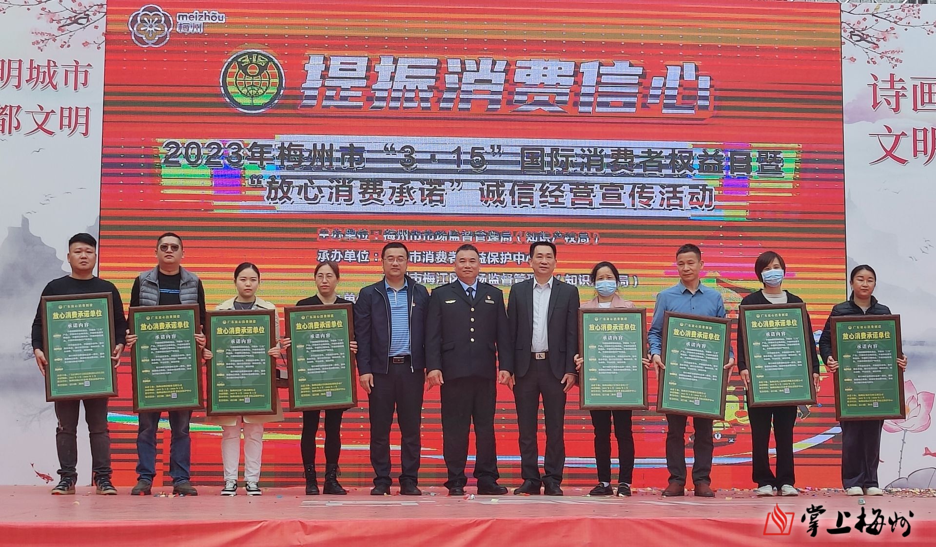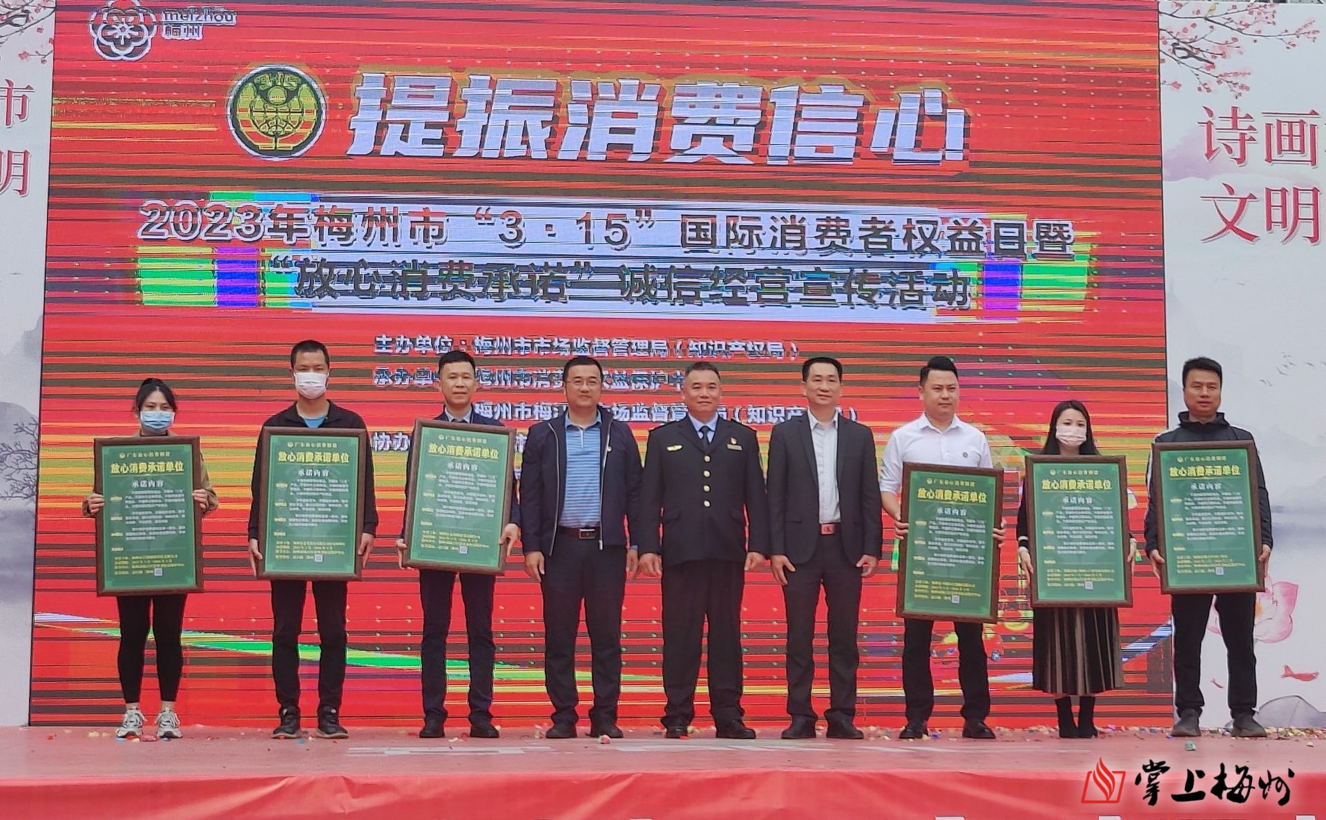 掌上梅州讯 3月15日是一年一度的国际消费者权益日。15日上午,2023年梅州市“3·15”国际消费者权益日暨“放心消费承诺”诚信经营宣传活动在梅城举行,推动消费提质升级,助力梅州经济平稳健康发展。