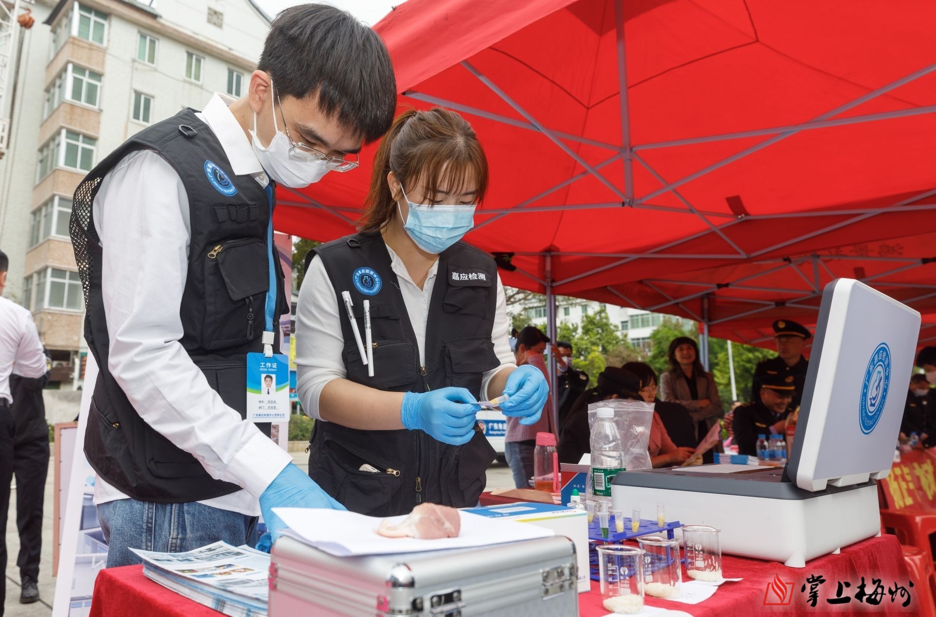 “这是我上午市场买的菜,帮我检测看看有无食药残留。”“帮我检测下猪肉,看有没有注水。”记者看到,市场监管部门把食品快速检验车“开”进了活动现场,现场开展“你送我检”活动,为群众检测青菜、肉类等农产品的农药残留情况,吸引了不少群众驻足参与。与此同时,我市市场监管系统、消保部门、各成员单位工作人员现场设置摊位,向群众派发消费维权宣传材料,现场解答群众消费维权问题,讲解日常生活中如何辨别真假伪劣产品等方式,向广大消费者普及消费常识和法律法规知识,提升消费者维权意识,保护消费者合法权益。