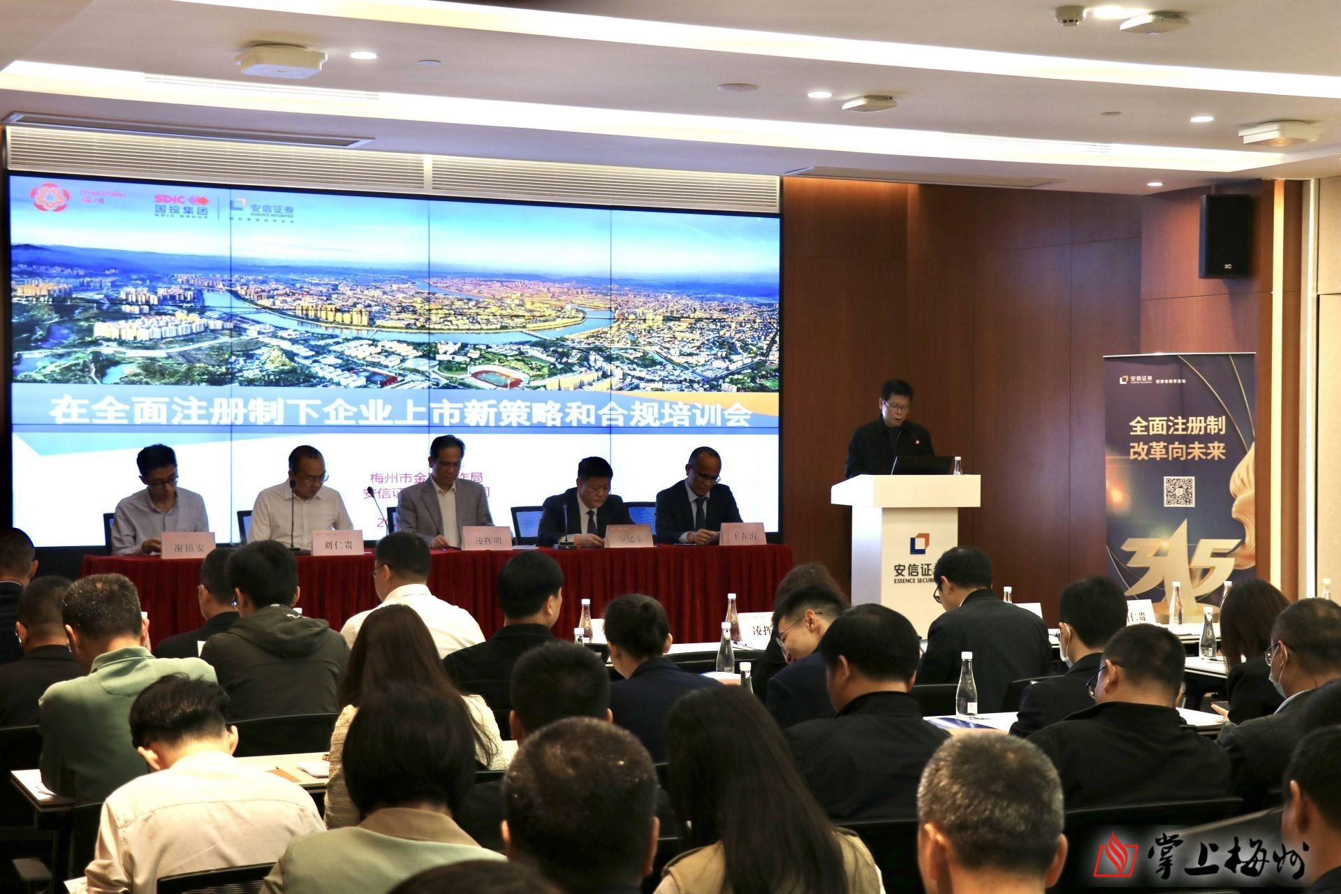 掌上梅州讯 3月17日上午,由梅州市金融工作局、安信证券梅州分公司联合举办的“在全面注册制下企业上市新策略和合规培训会”在梅城举行。培训会邀请安信证券投资银行部高级副总裁刘仁贵、广东华商律师事务所高级合伙人王在海、平安财险广东分公司经理谢镇安为我市上市公司、新三板挂牌企业和上市后备企业的负责人及各县(市、区)金融工作局的负责人解读全面实行股票发行注册制改革的有关规定、履职风险管理,进一步提高参会人员对多层次资本市场新形势、新政策、新业务的认知度。