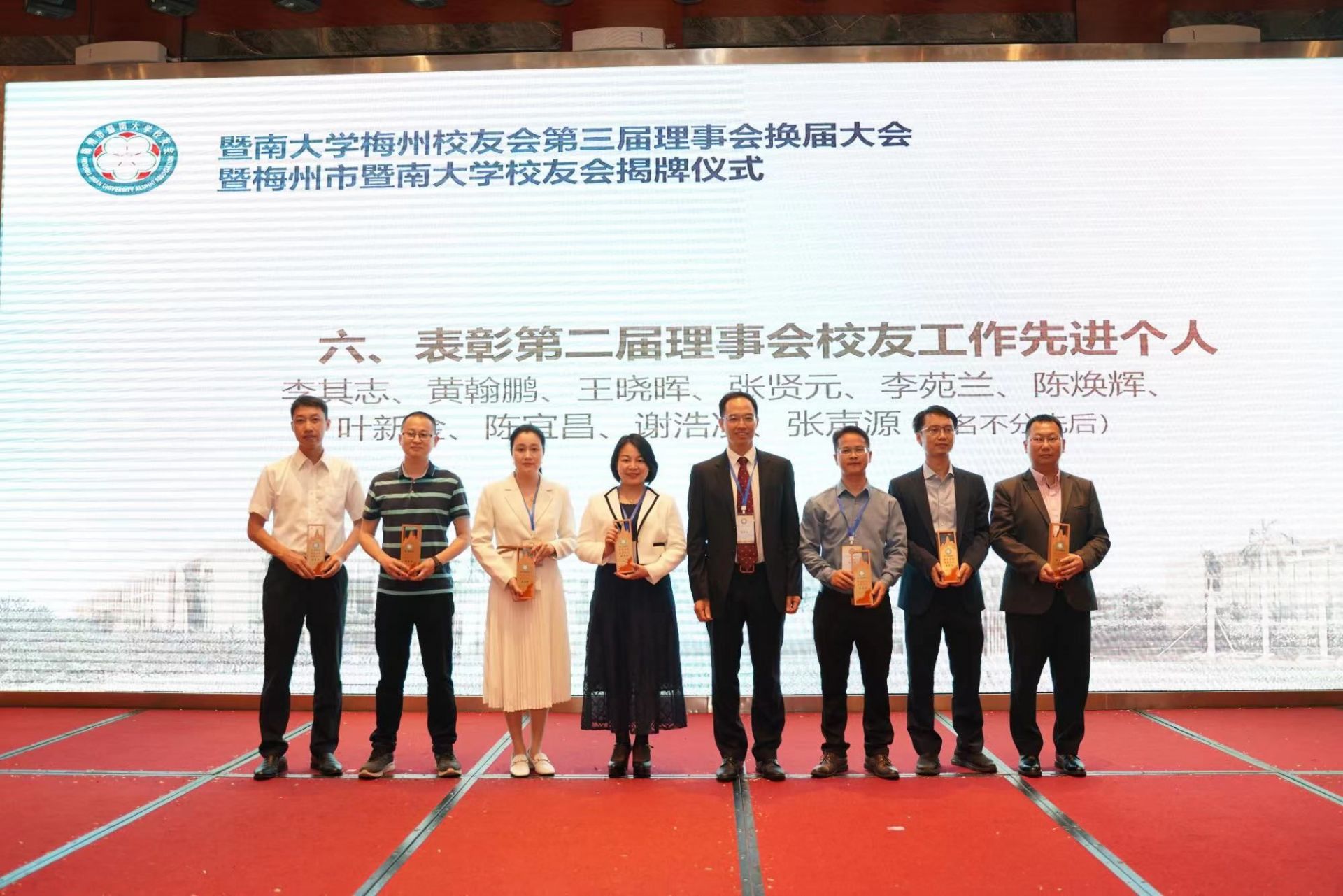 活动举行了梅州市暨南大学校友会授旗仪式,向梅州市暨南大学校友会第三届理事会成员颁发了聘书,为第三届梅州市暨南大学校友会各分区进行了授旗。据了解,3月13日,梅州市民政局发出行政许可决定书,准予梅州市暨南大学校友会成立登记成为社会团体法人。