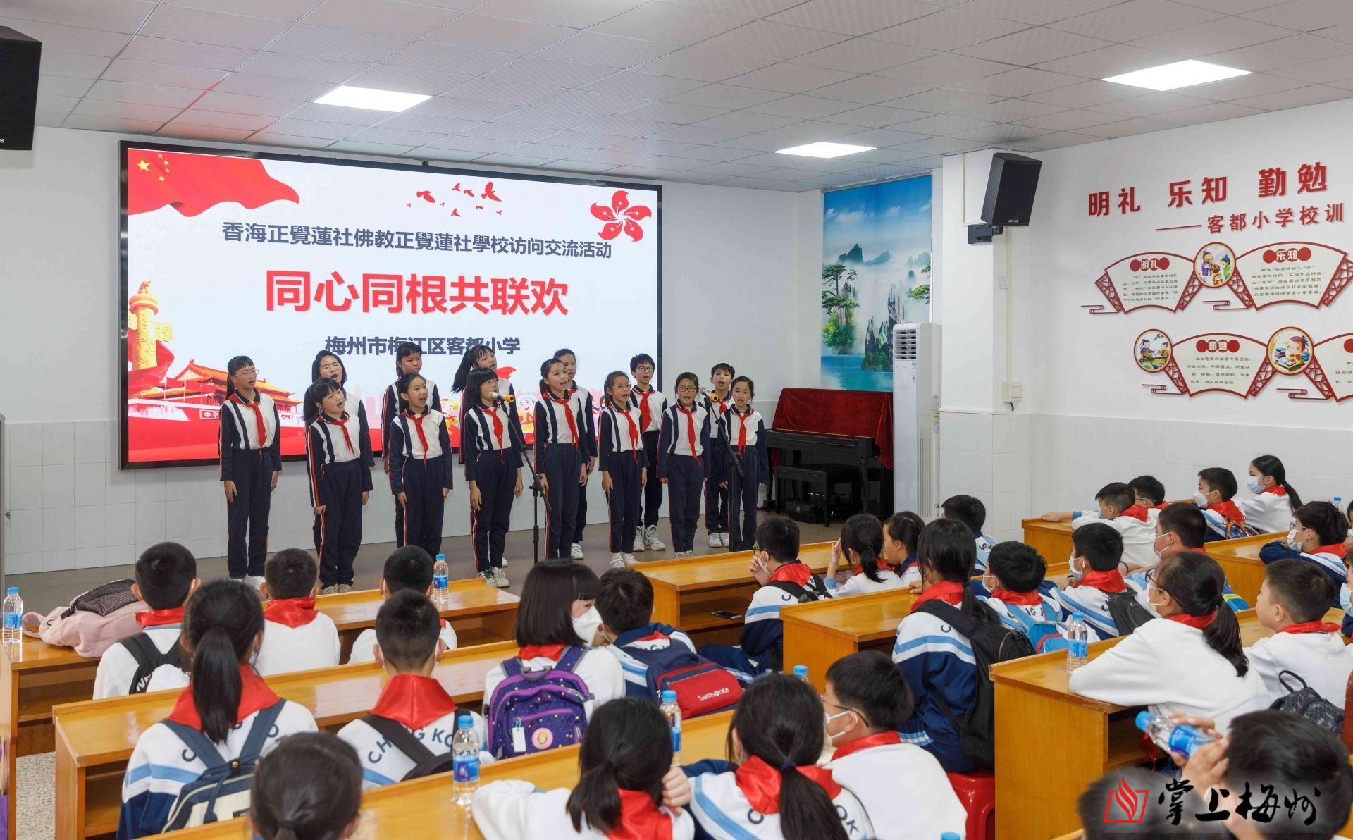 掌上梅州讯 4月7日下午,客都小学热闹非凡。来自香港正觉莲社佛教正觉联社学校、苏浙公学的120名师生与客都小学师生代表齐聚一堂,开启了他们为期4天的梅州红色之旅。市台港澳办主任邓志兴,副主任邓锐,香港正觉莲社佛教正觉联社学校校长陈丽嫦,副校长陈淑怡,香港苏浙公学老师吴玲玲,梅港青少年交流促进会代表吕容枝等出席活动。