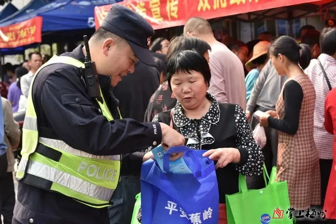 蕉岭公安向广大村民、市民和游客开展法律、反诈防骗知识等宣传。(蕉岭公安供图)