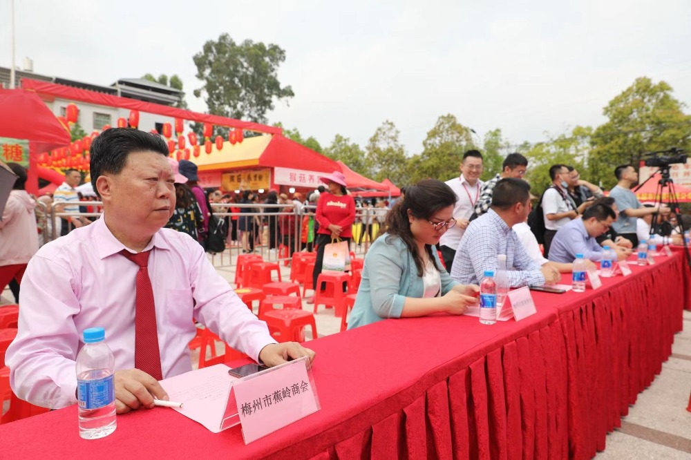 蕉岭县委常委、宣传部部长陈丽,市民政局二级调研员温燕玲,市商务局四级调研员张文博,梅州日报社党委委员、副社长钟勇,参展企业代表,梅州市乡村振兴产业协会、梅州市江西商会、梅州市湖南商会、梅州市蕉岭商会、梅县区白渡商会代表,梅州日报读者团、村民、游客等参加活动。
