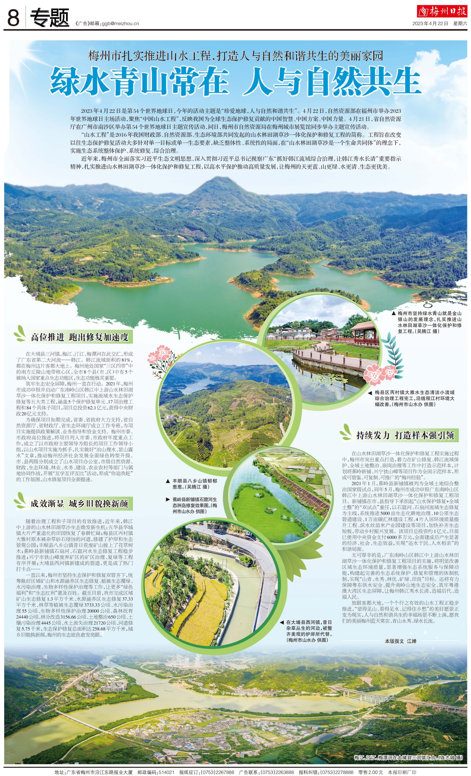 放眼客都大地,一个个行之有效的山水工程正稳步推进,“望得见山、看得见水、记得住乡愁”的美好愿景正变为现实,人与自然和谐共生的幸福场景不断上演,愿我们的美丽梅州蓝天常在、青山永秀、绿水长流。
