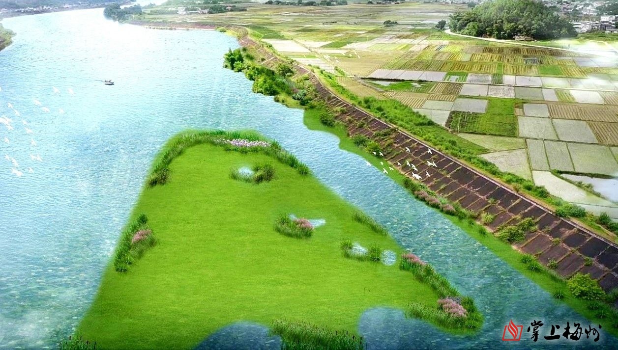 蕉岭县新铺镇石窟河生态洲岛修复效果图。(梅州市山水办 供图)