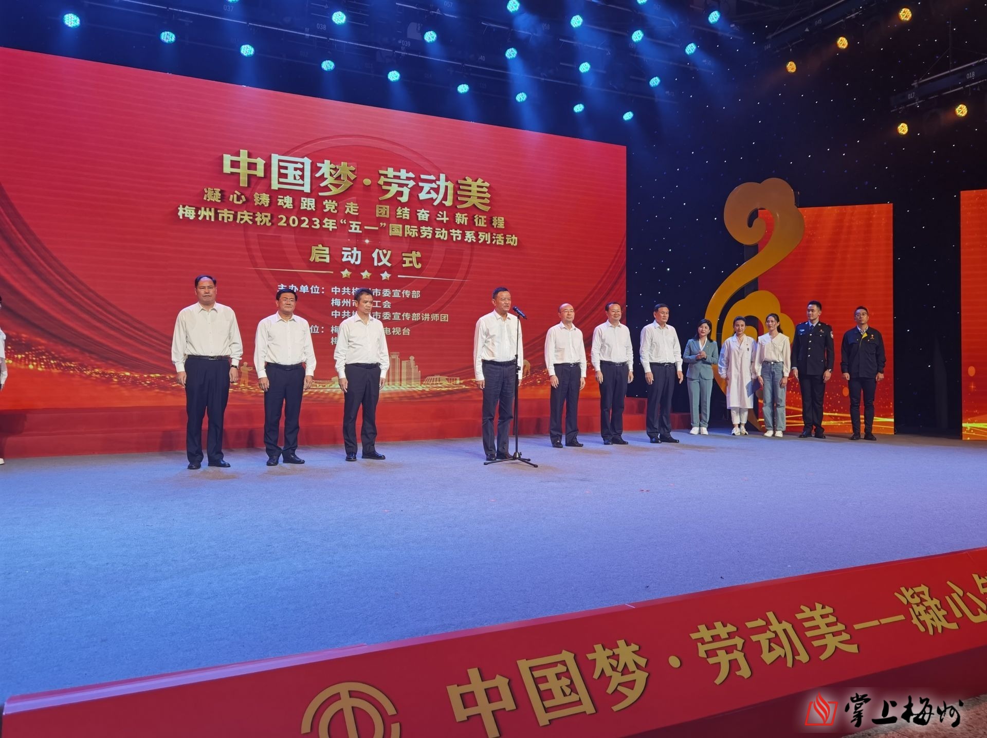 掌上梅州讯 28日,“中国梦·劳动美——凝心铸魂跟党走 团结奋斗新征程”梅州市庆祝2023年“五一”国际劳动节系列活动启动仪式举行。市委副书记王庆利,市委常委、宣传部部长张运全,市人大常委会副主任、市总工会党组书记、主席张达宏,副市长、秘书长陈亮等参加启动仪式。
