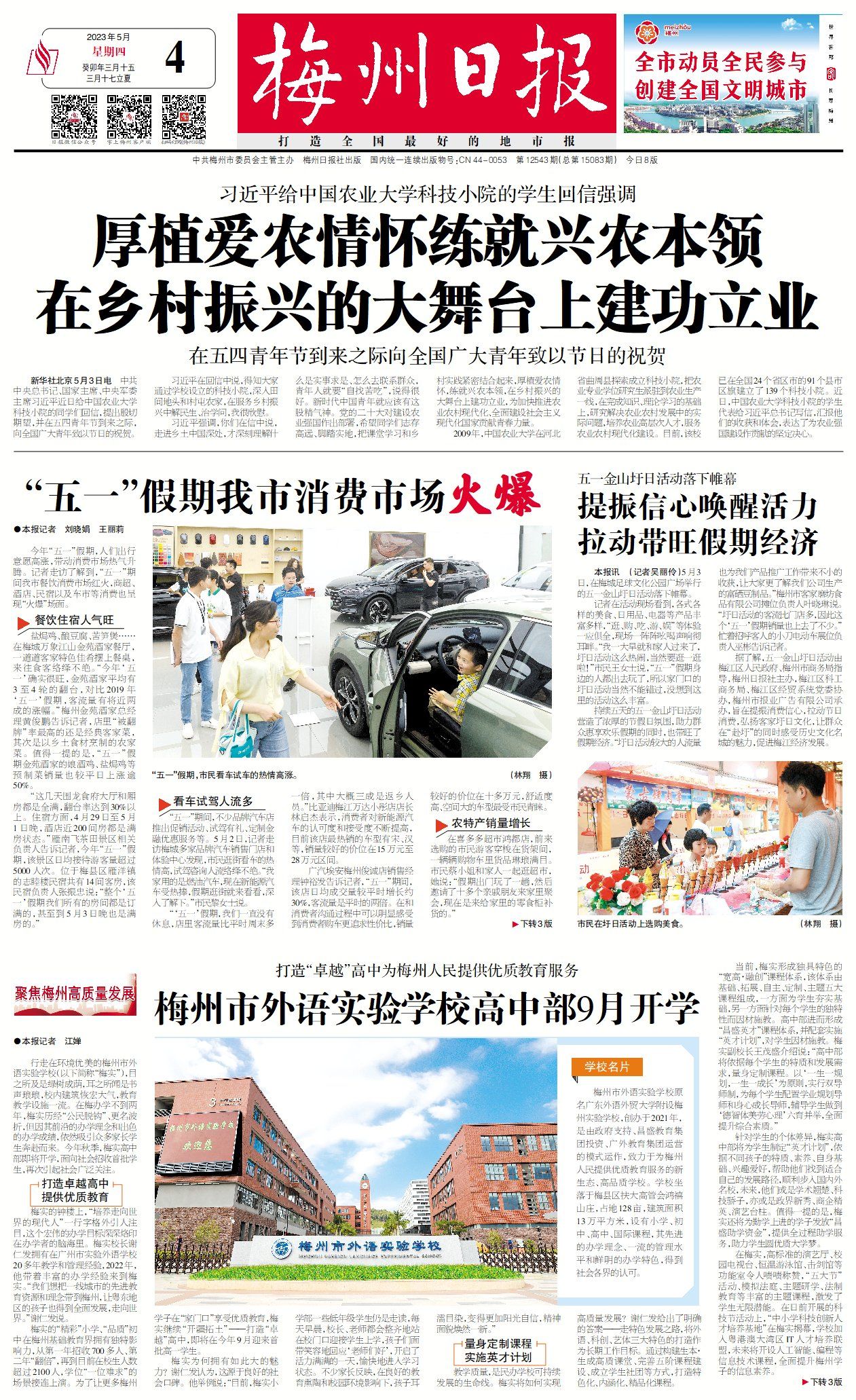 先进的育人理念、科学的定制课程、精专的师资团队、精准的学生培养、高水平的教育方法、多元化的升学途径,是群众对美好教育的期盼,也是梅实推进高质量发展的有效实践。一颗“广外系”基础教育新星正在梅州冉冉升起,梅实将继续深耕梅州,带领广大学子走向更广阔的舞台,成为粤东区域基础教育高质量发展的靓丽名片。