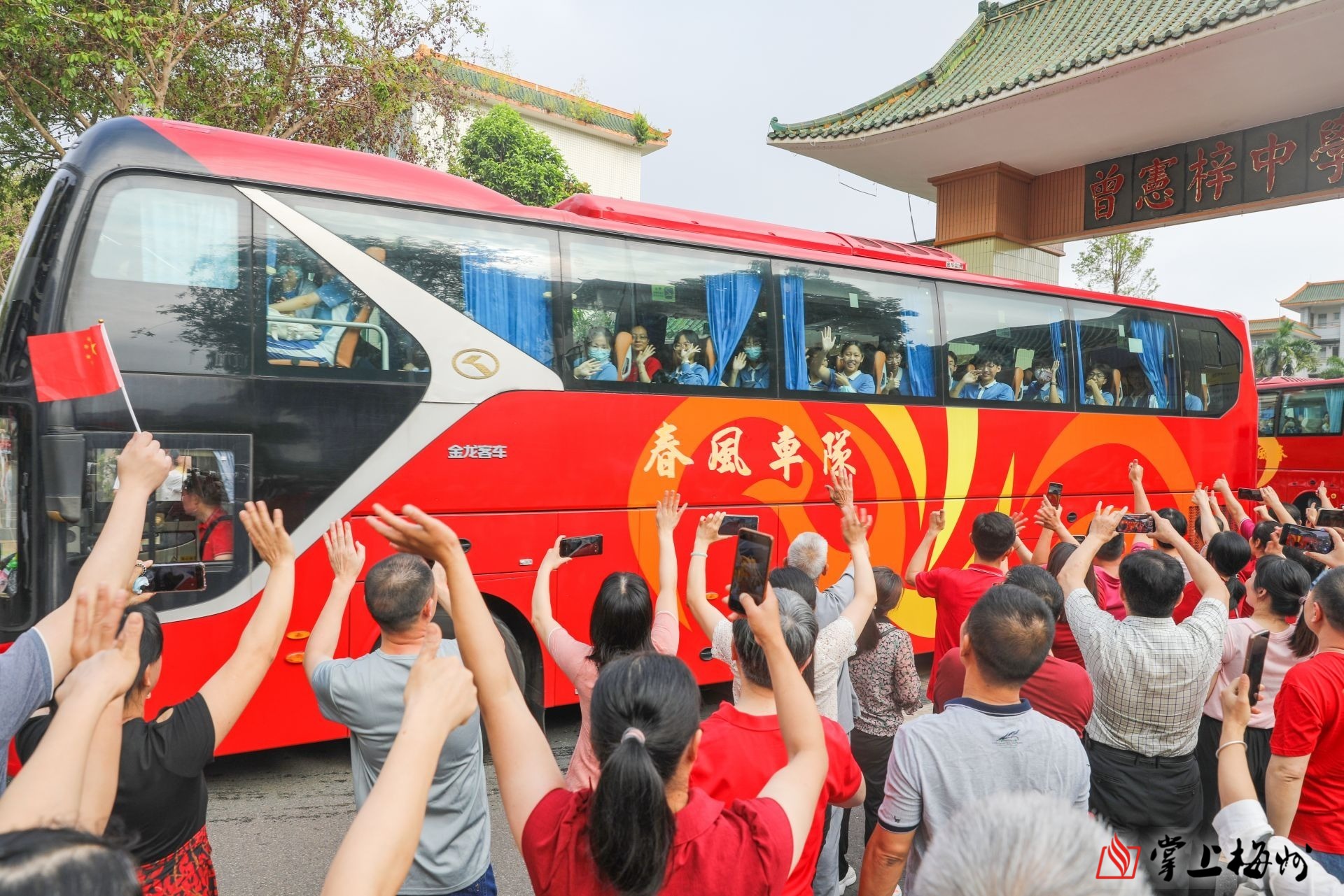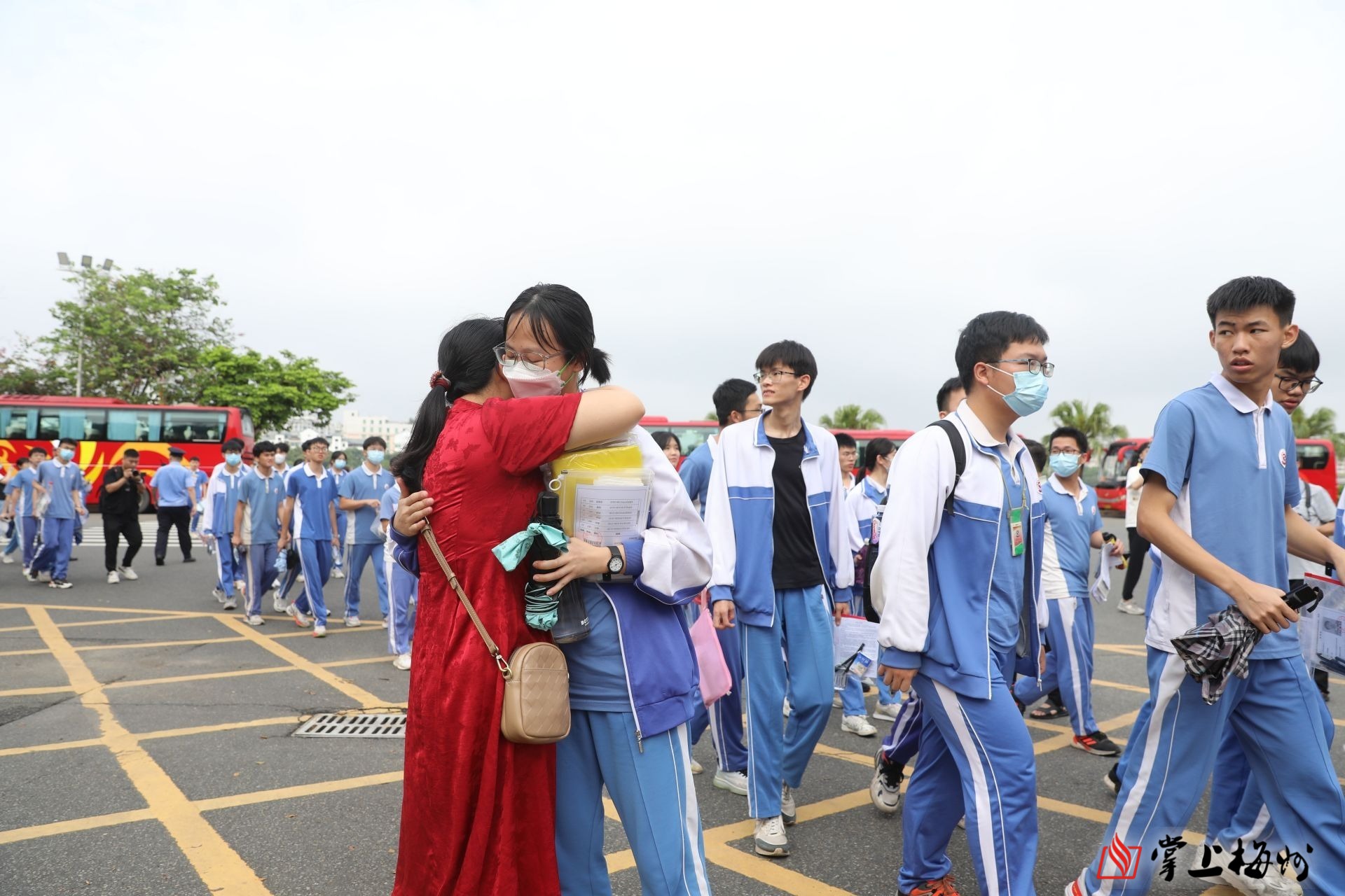考生从曾宪梓中学出发前往考场,家长们热情送考。(吴腾江 摄)