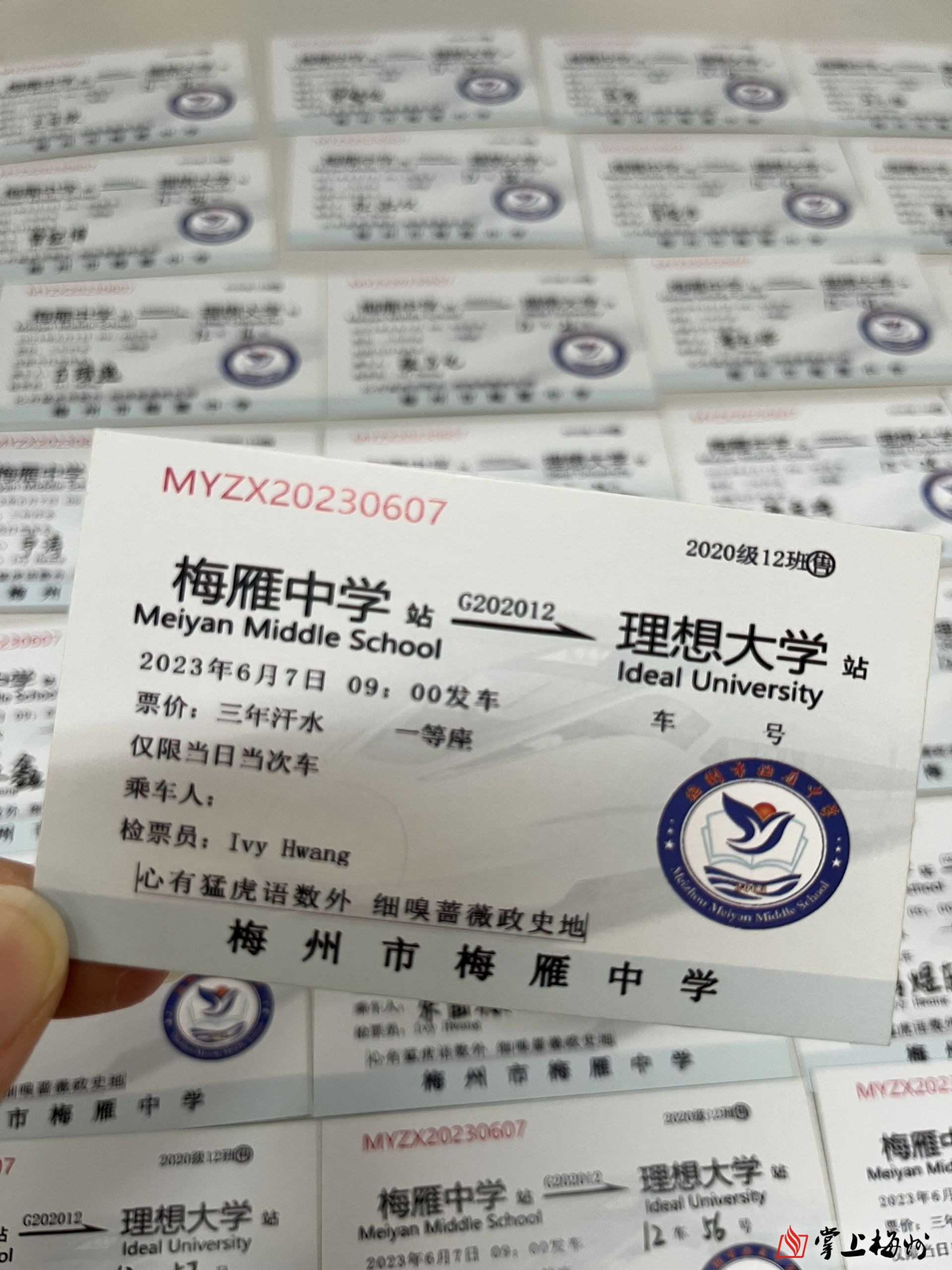 梅雁中学学生收到专属“车票”。(受访者供图)