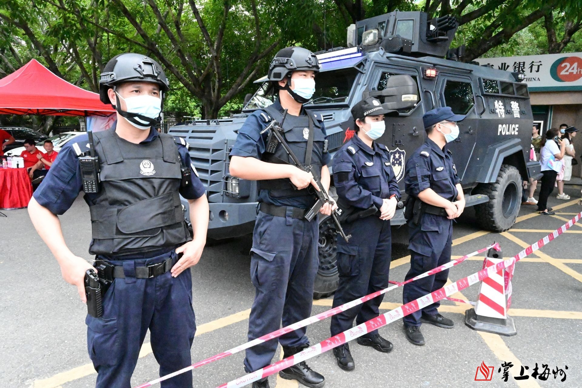 东山中学考场外,特警执勤为高考保驾护航。(钟小丰 摄)