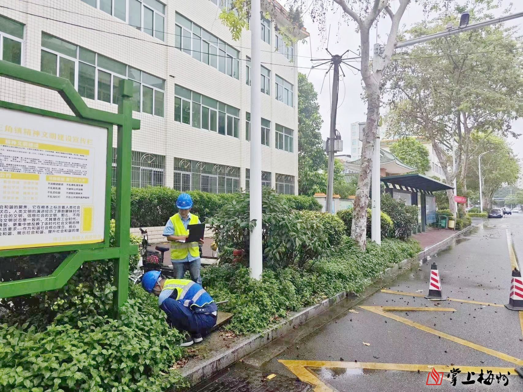 梅州粤海水务有限公司工作人员在考场周边进行供水管网巡查检修。(受访者供图)