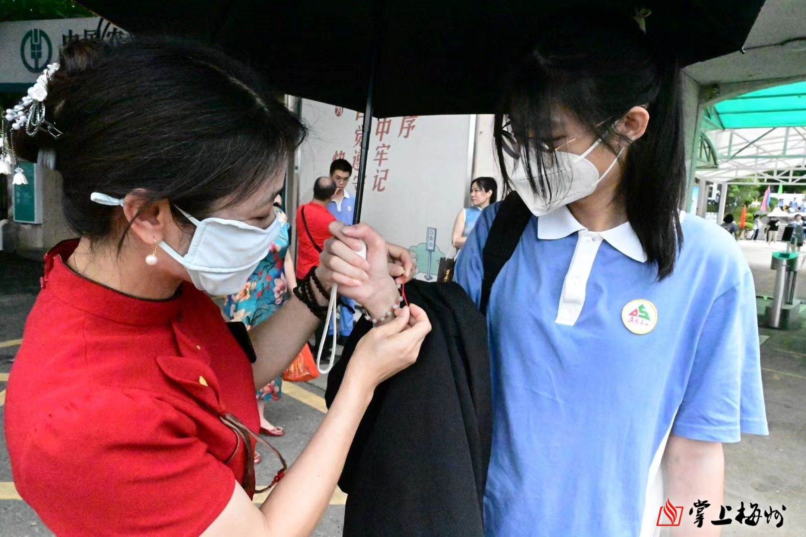 “我们考点设置有72个正式考场和5个备用考场,按照省、市统一部署,我们考点除常规监考员外,今年还配备了36名流动监考员,9名视频监考员,考前均已做好监考员培训工作,确保全体监考员严格规范监考、有效处置异常情况。”广东梅县东山中学教务科教师曾焕锋介绍,为了让广大考生安心应考,该考点还推出了系列暖心助考举措:在每个封闭区内,提供有直饮水和纸杯,方便考生饮水;每个厕所门口均放置有纸巾和洗手液,供考生使用;在考场外,还放置套有塑料袋的大白桶,并贴上“雨具存放”提示,供考生雨天存放雨具。