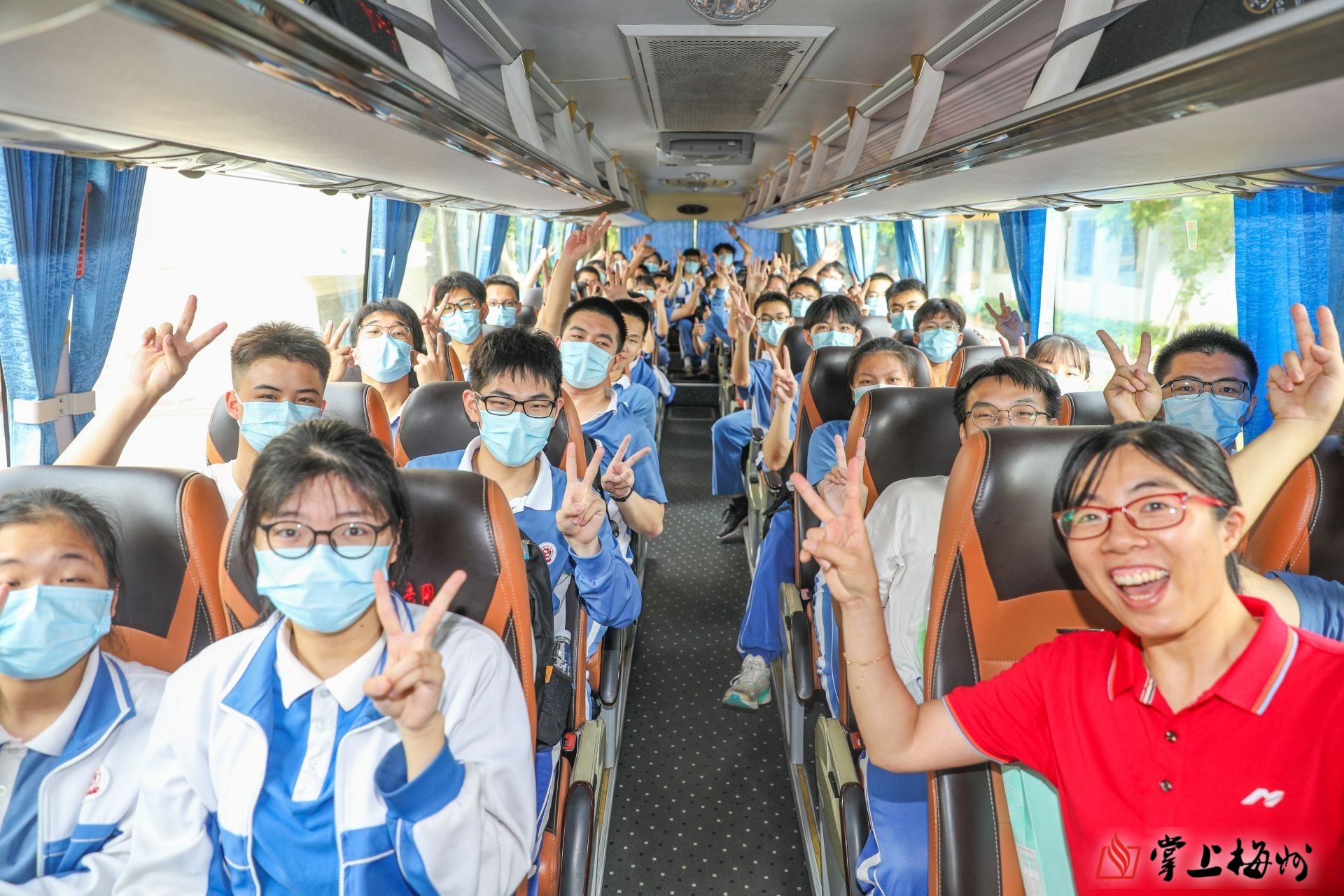 早上七时许,广东梅县外国语学校校园内外一派热闹喜庆的景象。约500名高一高二级学生早早地排起长队,喊着整齐划一口号,为高三考生加油壮行。在热烈的掌声和呐喊声中,考生们陆续穿过送考长队,自信满满地乘上送考专用大巴前去考点,整个送考场面壮观而又激动人心。