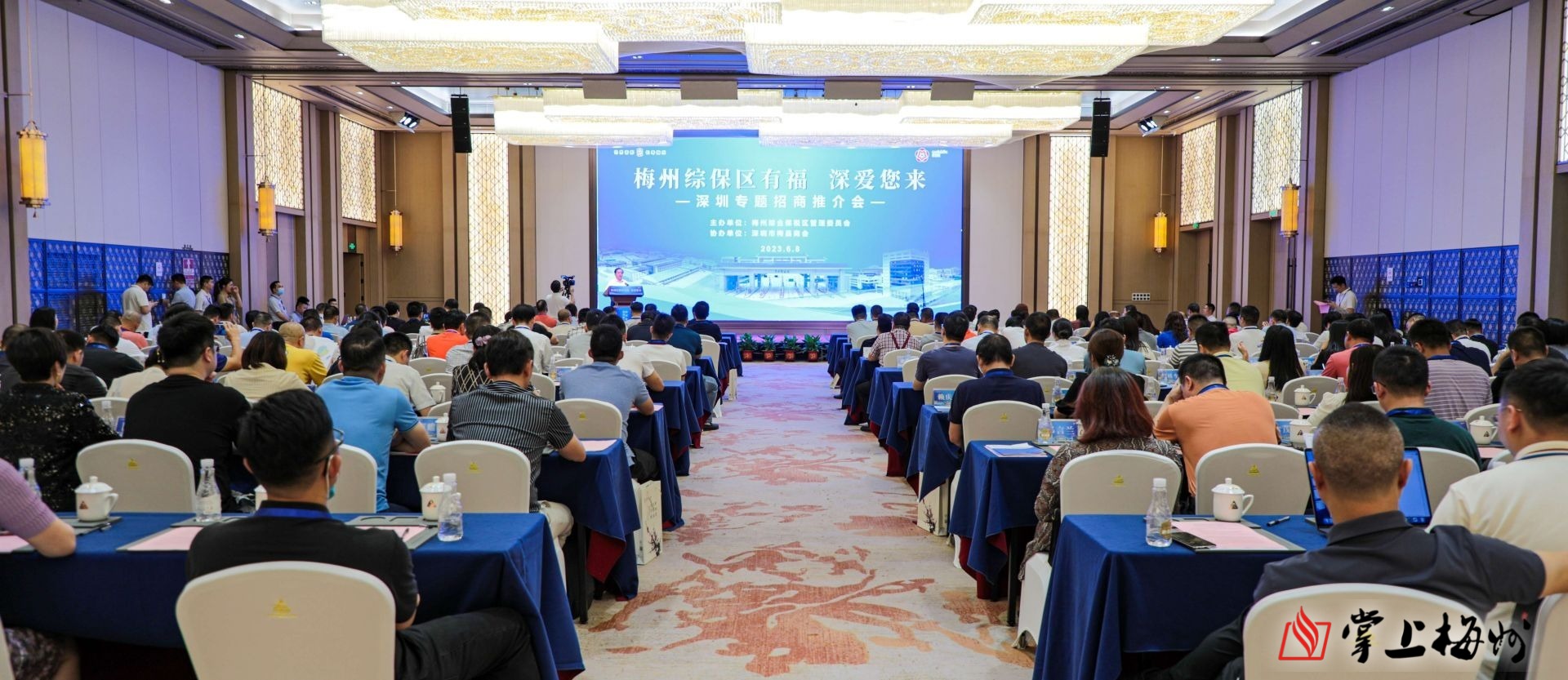 掌上梅州讯 6月8日,“梅州综保区有福 深爱您来”——梅州综保区“湾区系列招商”活动深圳专题招商推介会在深圳银湖会议中心举行,200余位来自深圳及周边地区的企业家代表、乡贤、协会代表受邀参加,新知旧友相聚美丽深圳,共话时代机遇,共叙合作情谊,共商发展大计。现场签约2个招商引资战略合作框架协议,共签约意向入区项目5个,计划总投资额约4.4亿元,进出口总额约30亿元,涵盖加工制造、保税维修、跨境电商、物流供应链等领域。