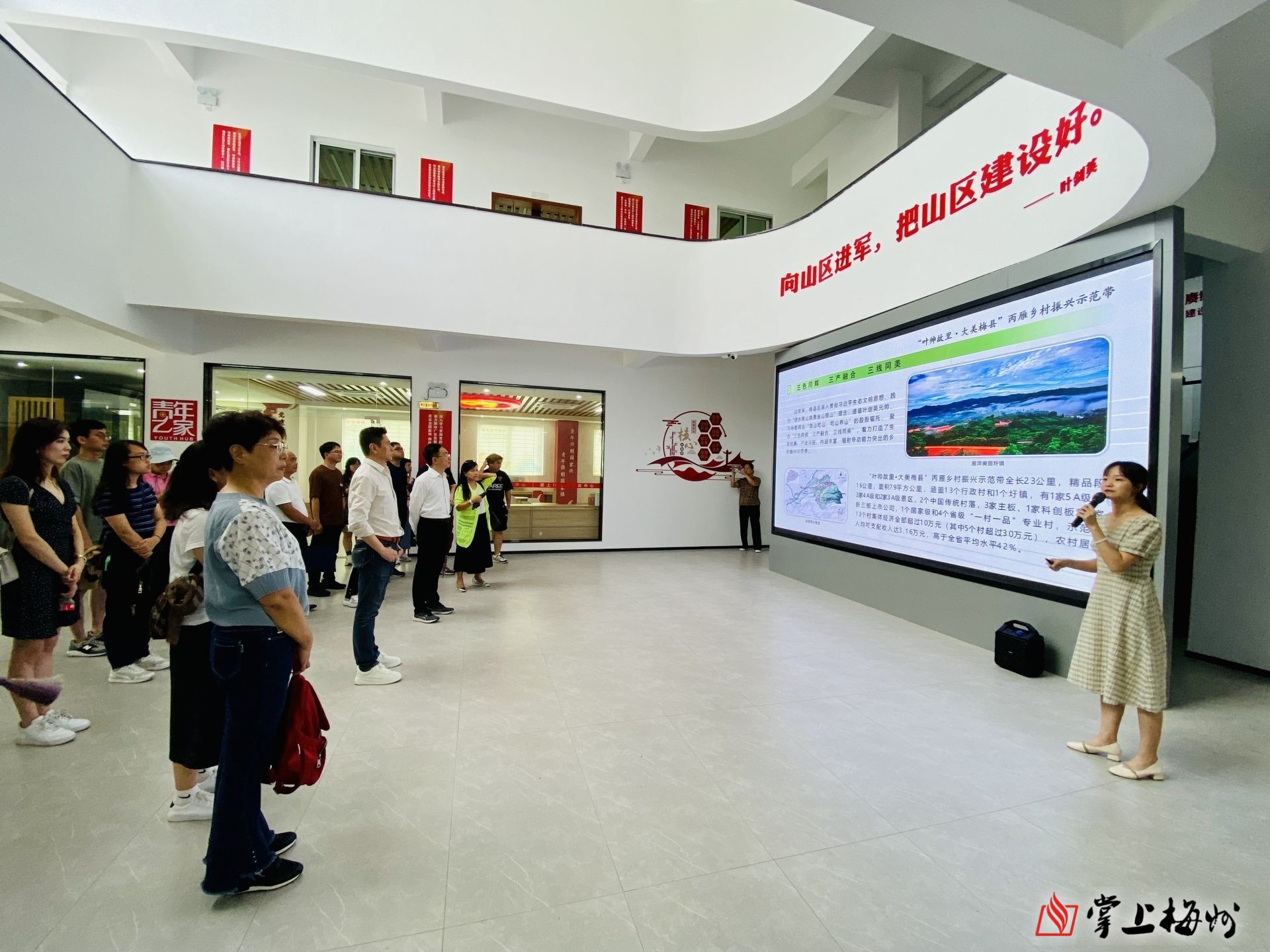 风景美、产业旺,乡村振兴的成效让学员们深深感受到内地巨大的发展潜力。在广东梅州梅县区丙雁乡村振兴示范带,阴那山下流水潺潺、绿意盎然,在蓝天白云映衬下犹如一幅美丽画卷,吸引不少学员驻足拍照打卡;雁上村党群服务中心、雁上村民房风貌提升示范点、金柚智慧科技展厅、阴那山茶业合作社等乡村振兴产业项目正如火如荼推进……