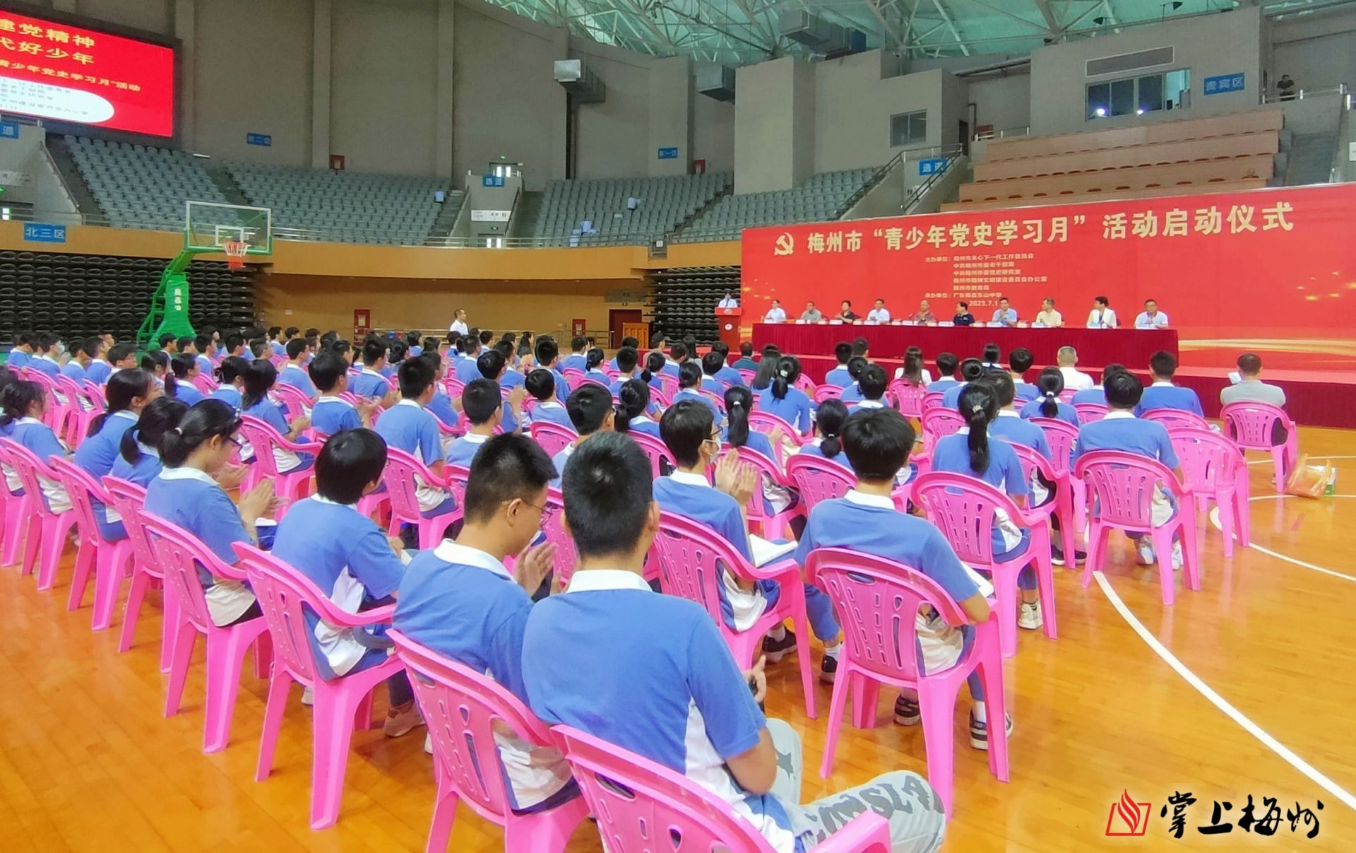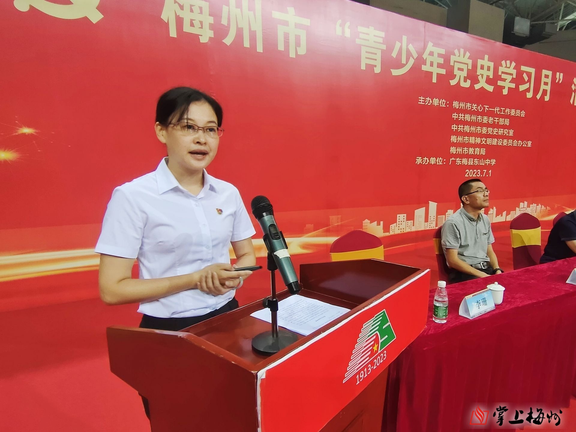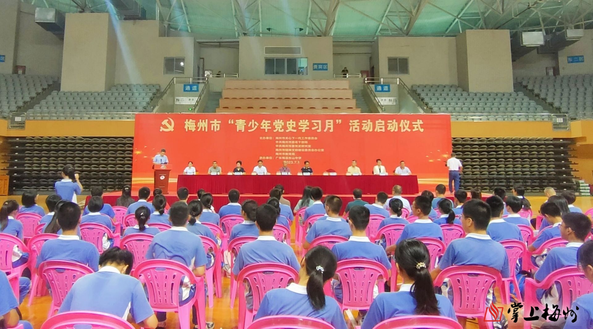 掌上梅州讯 7月1日,梅州市“青少年党史学习月”活动启动仪式在广东梅县东山中学举行。市关工委主任何正拔、常务副主任陈林荣,市关工委、市委老干部局、市委党史研究室、市文明办、市教育局等有关单位负责人以及学校师生等参加活动。