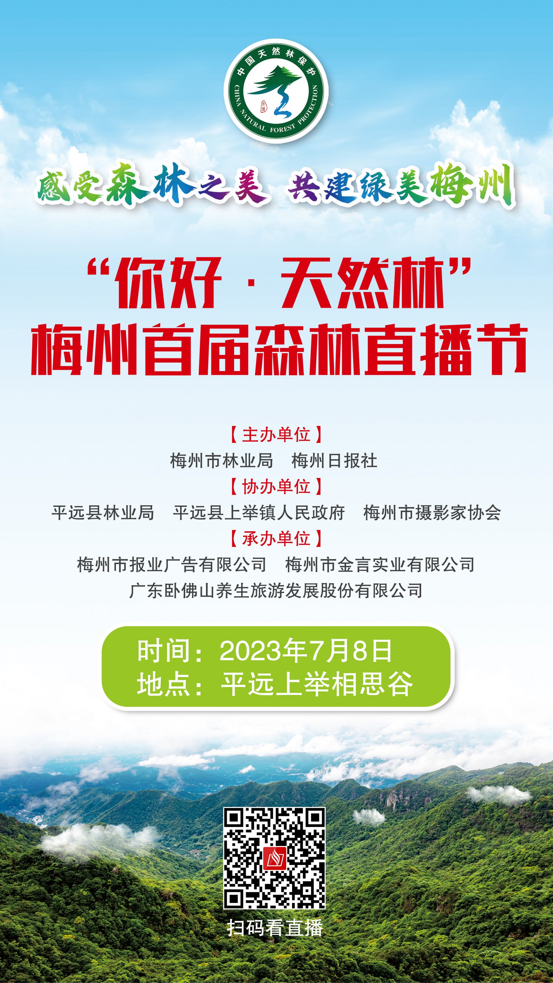 为了生动展现森林资源的鲜活风貌,挖掘极具梅州特色的自然美景,让市民近距离地看到天然林,增加对梅州天然林的认识,引导广大群众走进森林,感受森林之美,由梅州市林业局和梅州日报社联合主办的“你好·天然林”梅州首届森林直播节系列活动将于7月8日在平远相思谷景区正式启动。“约会天然林”梅州日报读者团森林徒步游、“绿野仙踪”小记者带你探访天然林、林下经济产品展示、天然林优秀摄影作品展、天然林原创短视频创作大赛等项目丰富,精彩纷呈。梅州日报网红主播那叶赫将带领粉丝们深入天然林区,实地探访林区内的生态环境,感受森林之美,共建绿美梅州!