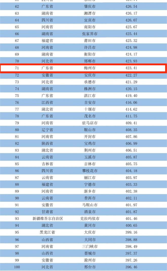 掌上梅州讯 近日,2023中国地级市品牌评价综合影响力指数揭晓,我市在全国地级市(不含省会以上城市)中排名第71位。